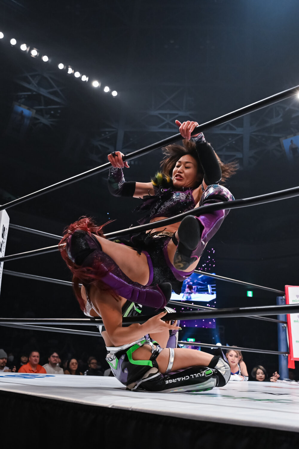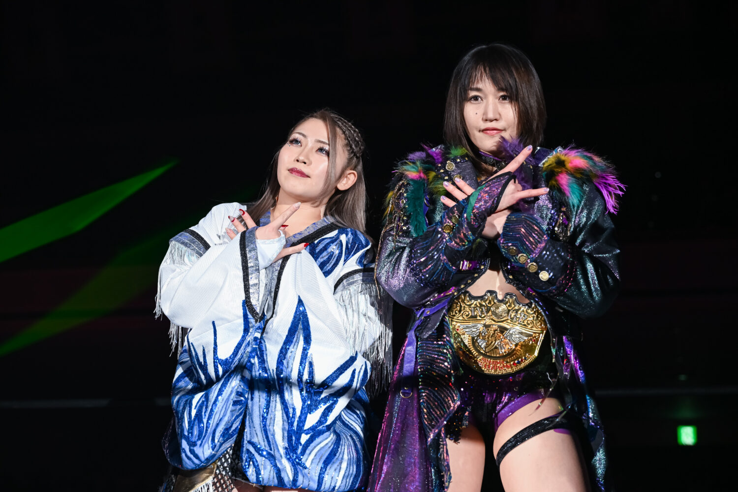 AZM「私はベルトがすべてなくなってしまったので。今日は久しぶりに朱里と手合わせして、やっぱりワクワクするなと思いました。朱里は来月、新年早々東京ドームが控えてるんで、いまはまだなにも言えませんけど…2人の闘い、一番楽しみにしています」
