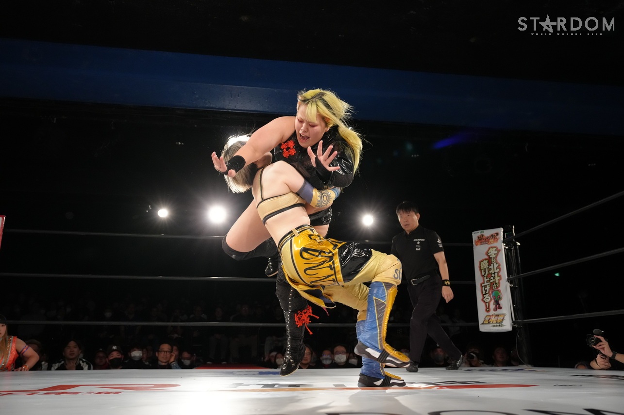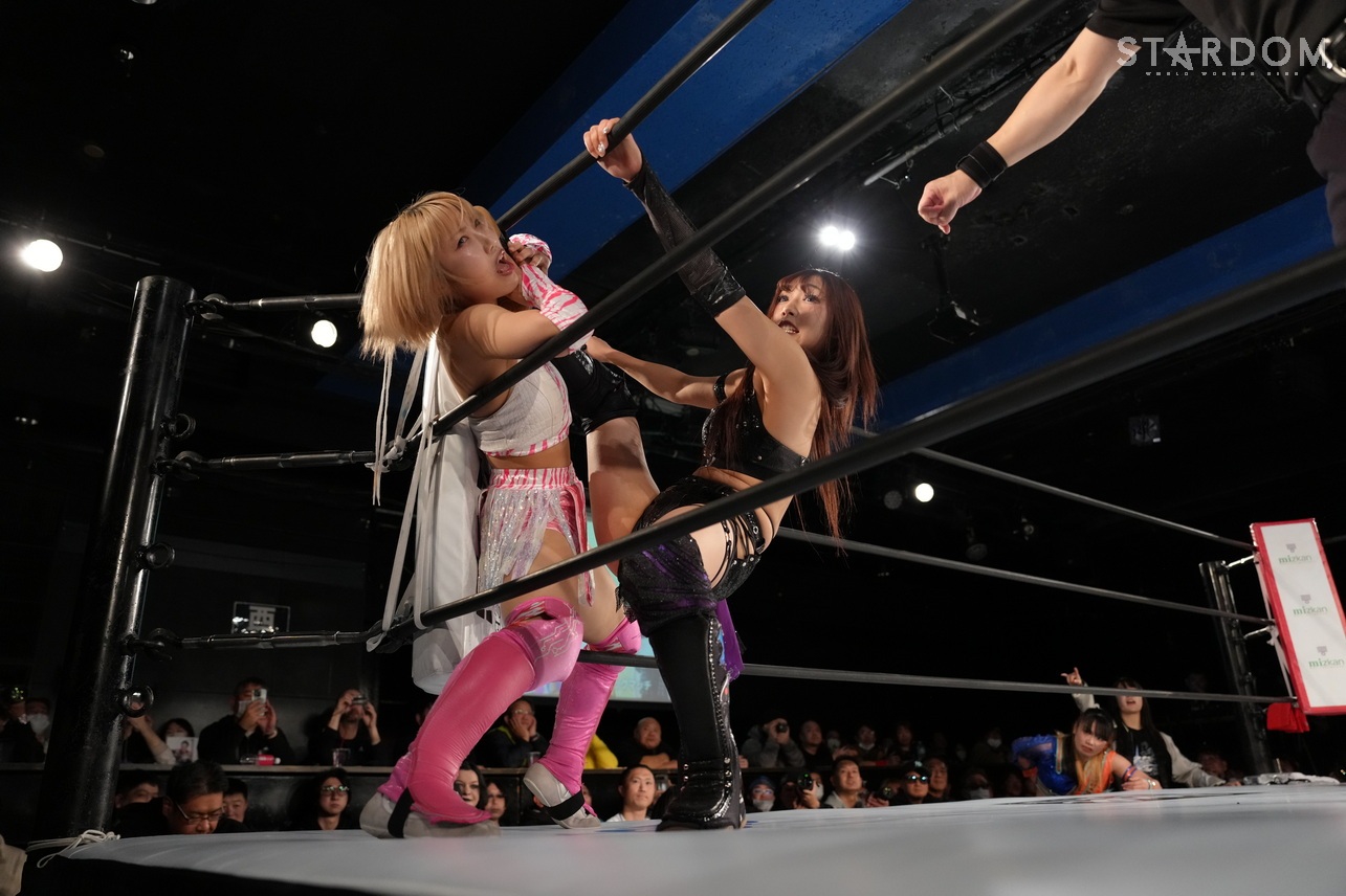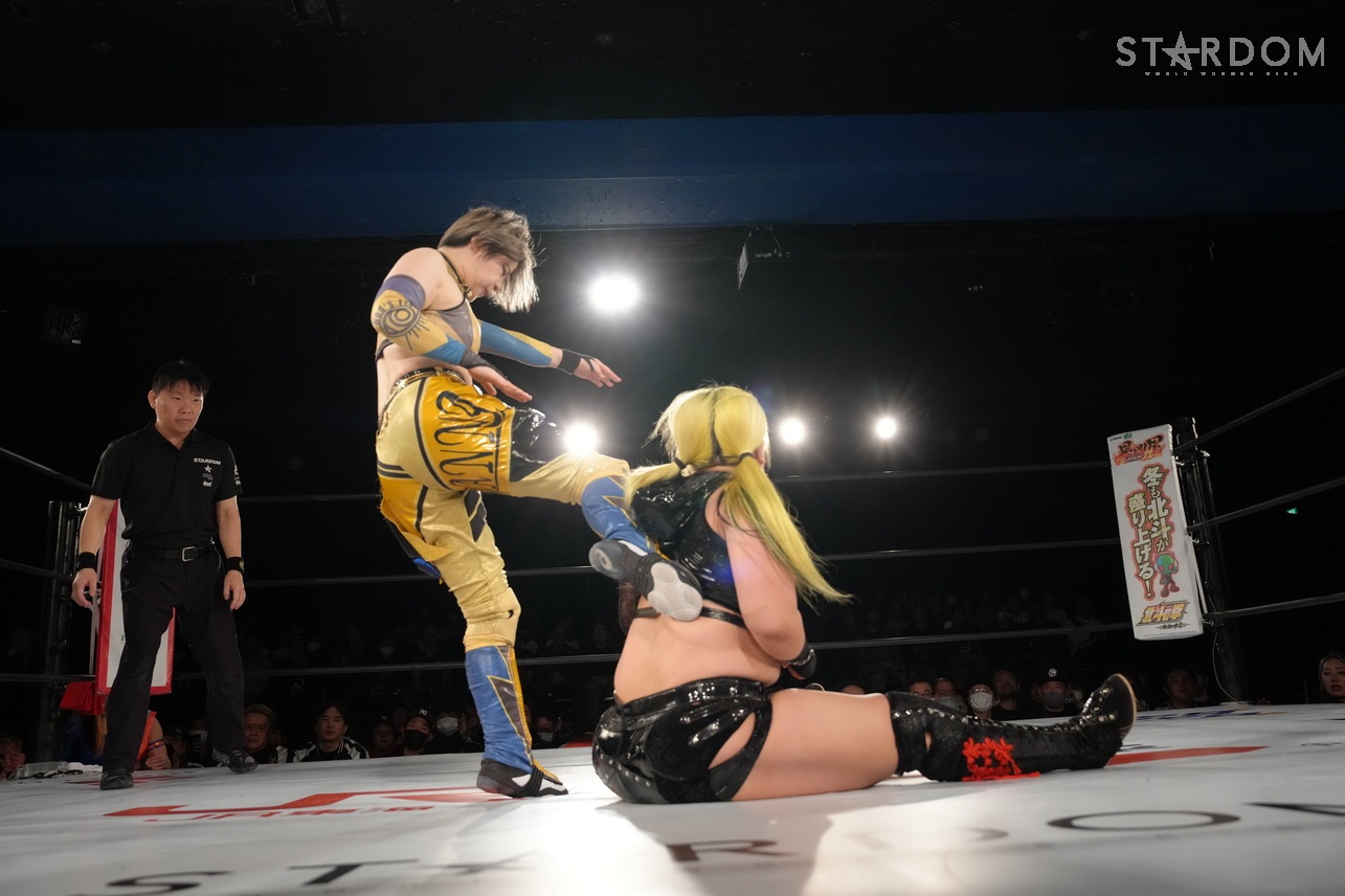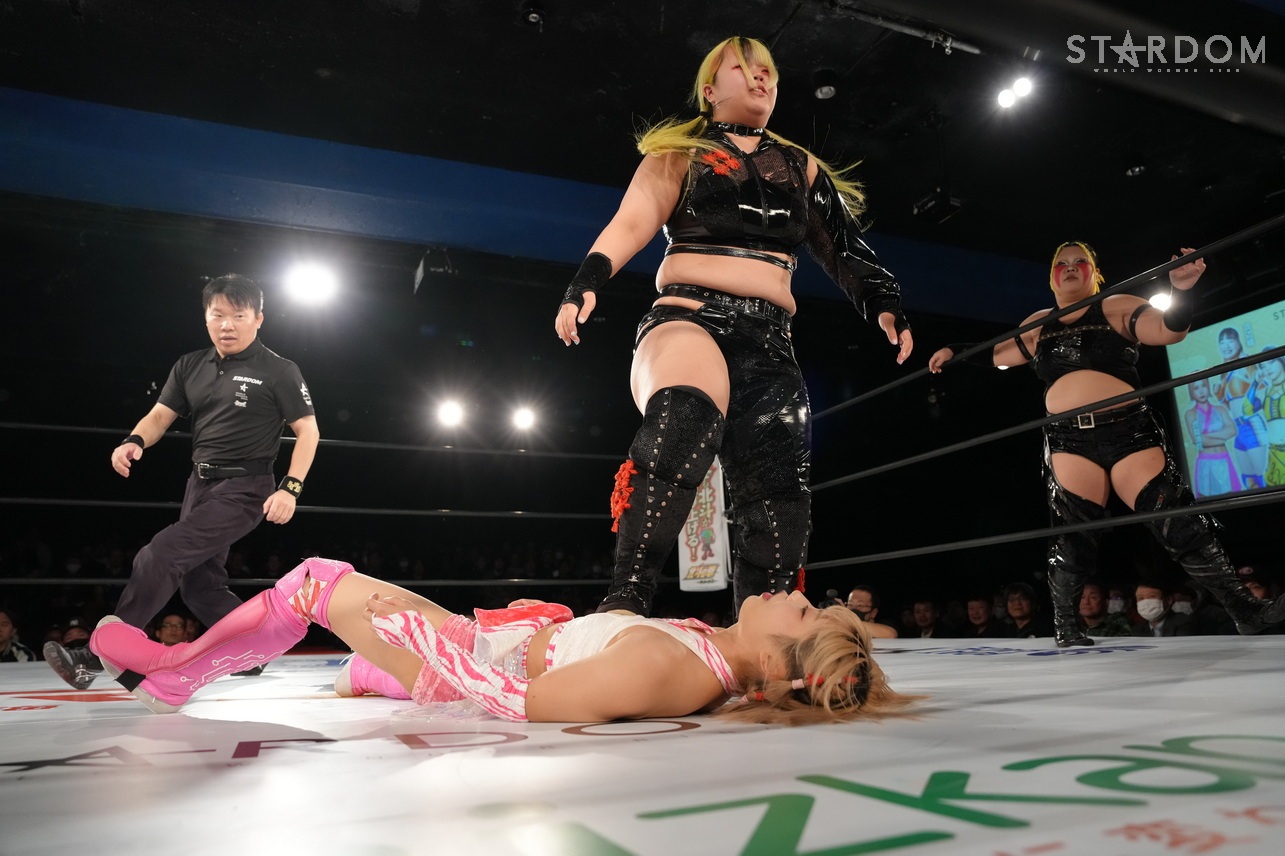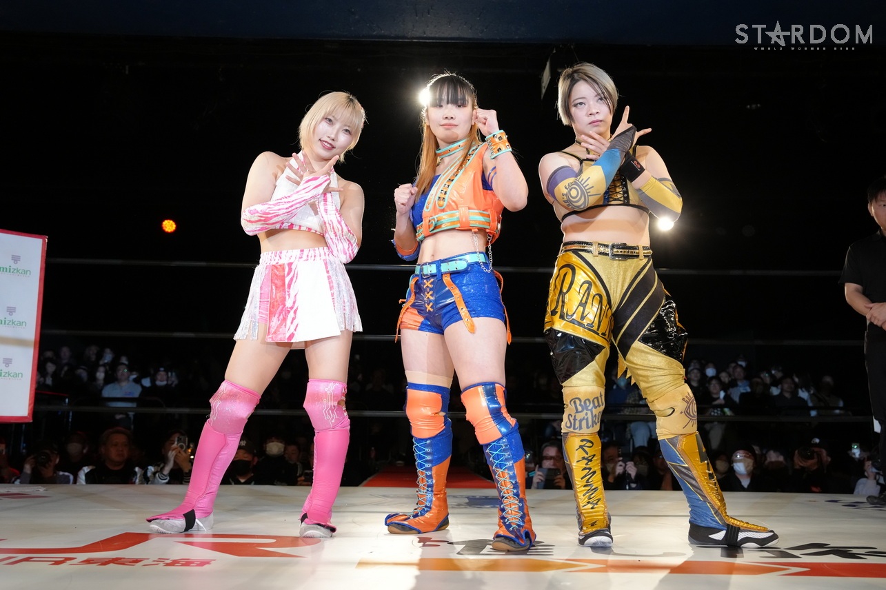 ゴッズアイの八神蘭奈&虎龍清花に浜辺纏が合流、H.A.T.E.の刀羅ナツコ&琉悪夏&稲葉あずさ組と6人タッグマッチで対戦する。