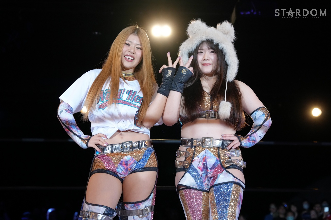 天咲「やっぱり、私もさっき中途半端なときあったんじゃないのって言ってたけど、それは琉悪夏とか、ずっとこうやって近い世代として見てたこともあって、すごい同じ苦しい経験とかしたのもわかるし、でも、アイツらはああやって克服して巻いてる。私たちも、そういうタッグなりたいし。あのベルトがいまの02lineには必要。絶対取りましょう」