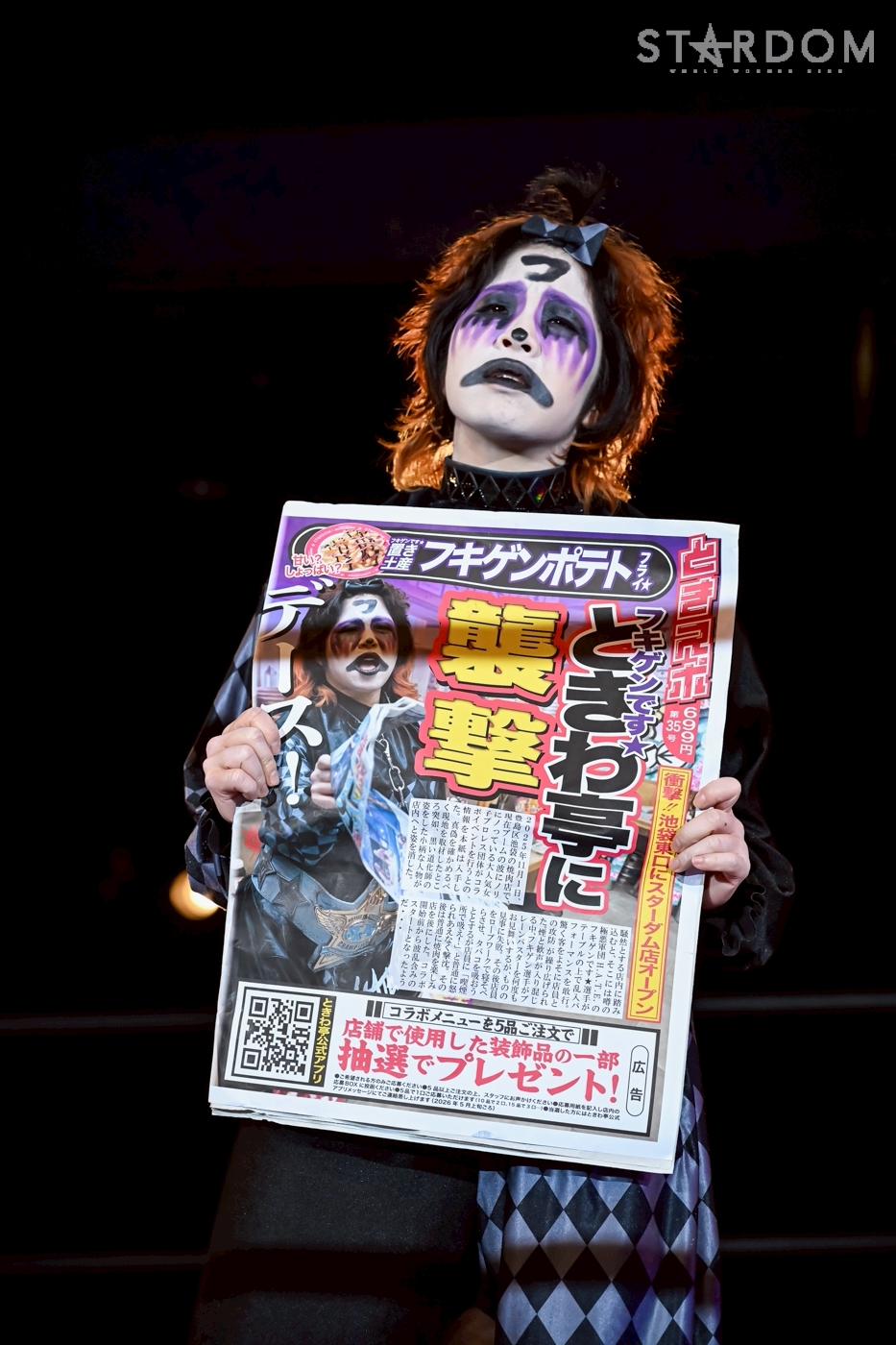 古沢とフキゲンが先発。フキゲンが古沢をかいくぐり四方にポーズ。古沢の突進をかわして場外に落とす。フキゲンがポーズを再開すると古沢が襲撃。しかしフキゲンは喫煙ポーズ。古沢がもみ消し、アンクルホールド。フキゲンが逃れると古沢がドロップキック。2発目を小波が阻止してフキゲンが鼻をつまむ。小波が古沢にサッカーボールキック、キャメルクラッチ。フキゲンが新聞を見せつけてギブアップを迫る。古沢がこらえるが、小波がロープに固定。フキゲンも攻撃に加わる。小波の片足カバーを古沢が返す。古沢はエルボー連打で向かっていく。小波がストンピング連打、古沢がドロップキック。アレックスが小波にエルボー連打。小波をブロックして連打すると串刺しラリアット、フライングラリアット、河津落とし、ラリアット。小波が返すと、サソリ固め狙い。小波が丸め込むが2カウント。小波がアレックスを止めてぶら下がり式腕十字。小波がコーナーに上がると古沢が止めてアレックスがデッドリードライブ。しかし、小波がハイキック、ミドルキック。アレックスが返すと、小波がミサイルキック。フキゲンがアレックスに串刺し攻撃狙い。しかし、そのたびにアレックスが足を出す。アレックスが串刺しで突進、フキゲンがかわし小波と連係攻撃、小波のミドルからフキゲンがセントーン。フキゲンがブレーンバスターを予告して丸め込む。アレックスが返すと古沢のアシストからフキゲンをマットに叩きつける。アレックスはフキゲンを抱え上げる。丸め込みを切り返されたフキゲンがさらに丸め込み。丸め込みの応酬を古沢がカット。アレックスがフキゲンのサミングを食らうがカウンターでラリアット、サソリ固め、フキゲンがギブアップし、アレックスの勝利となった。