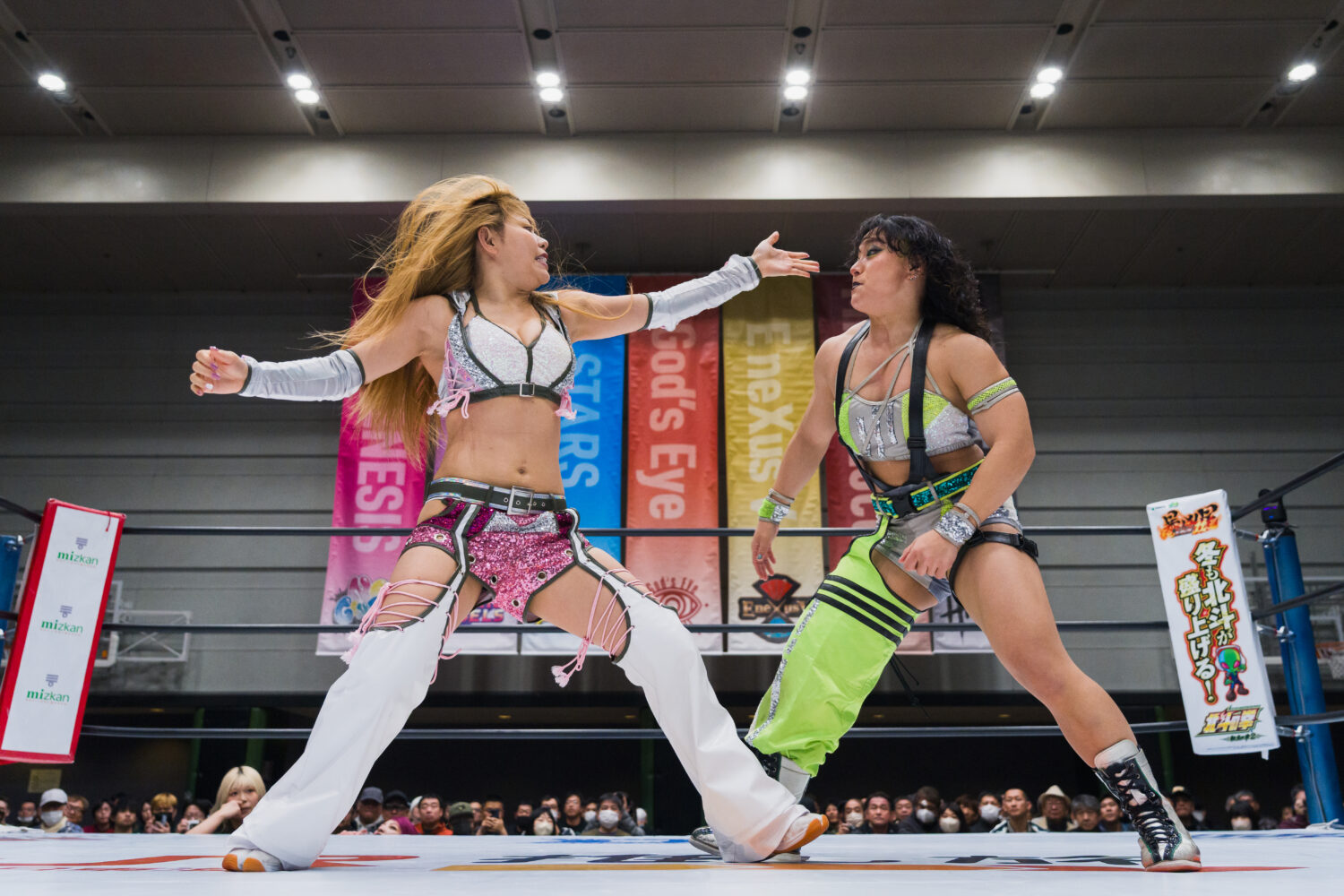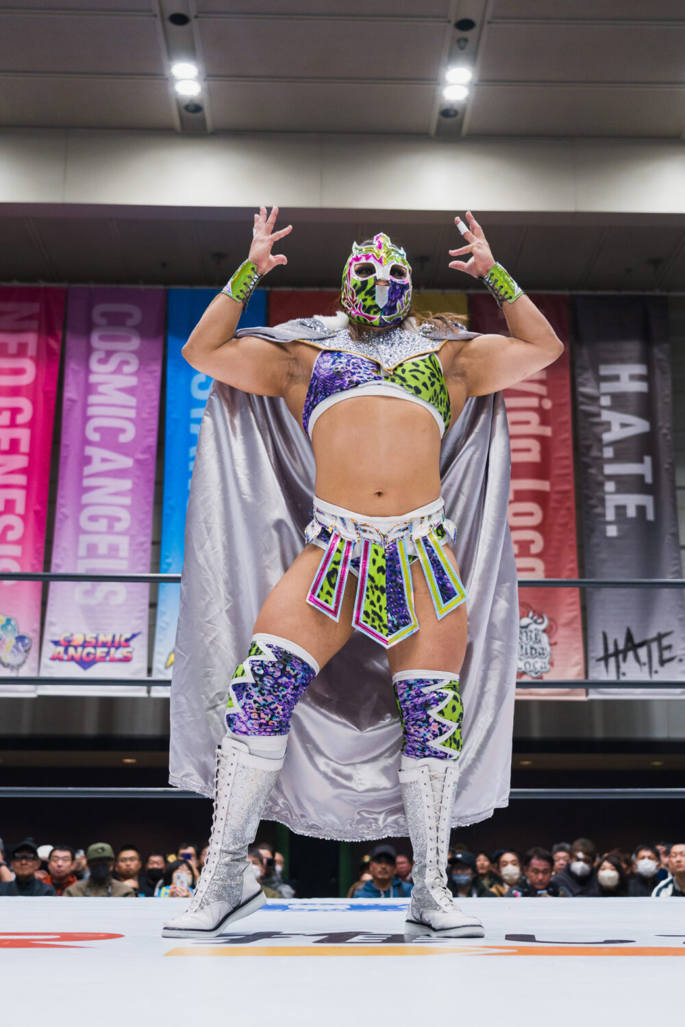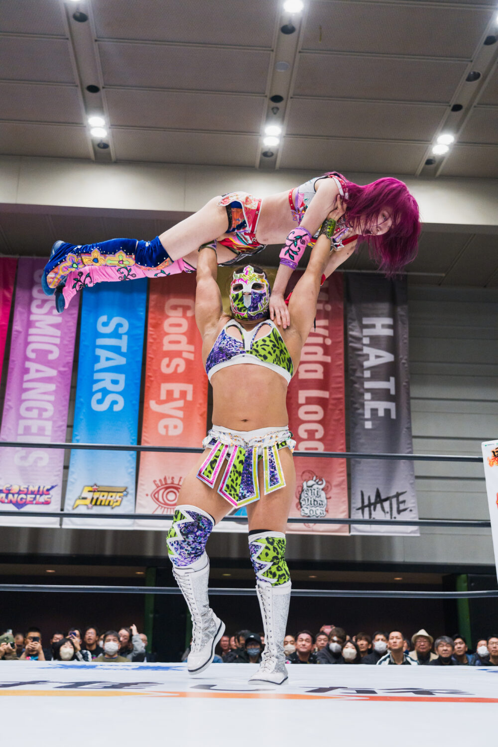 試合後は、葉月がオリンピアにCMLL日本女子のベルトを見せつけ睨み合い。