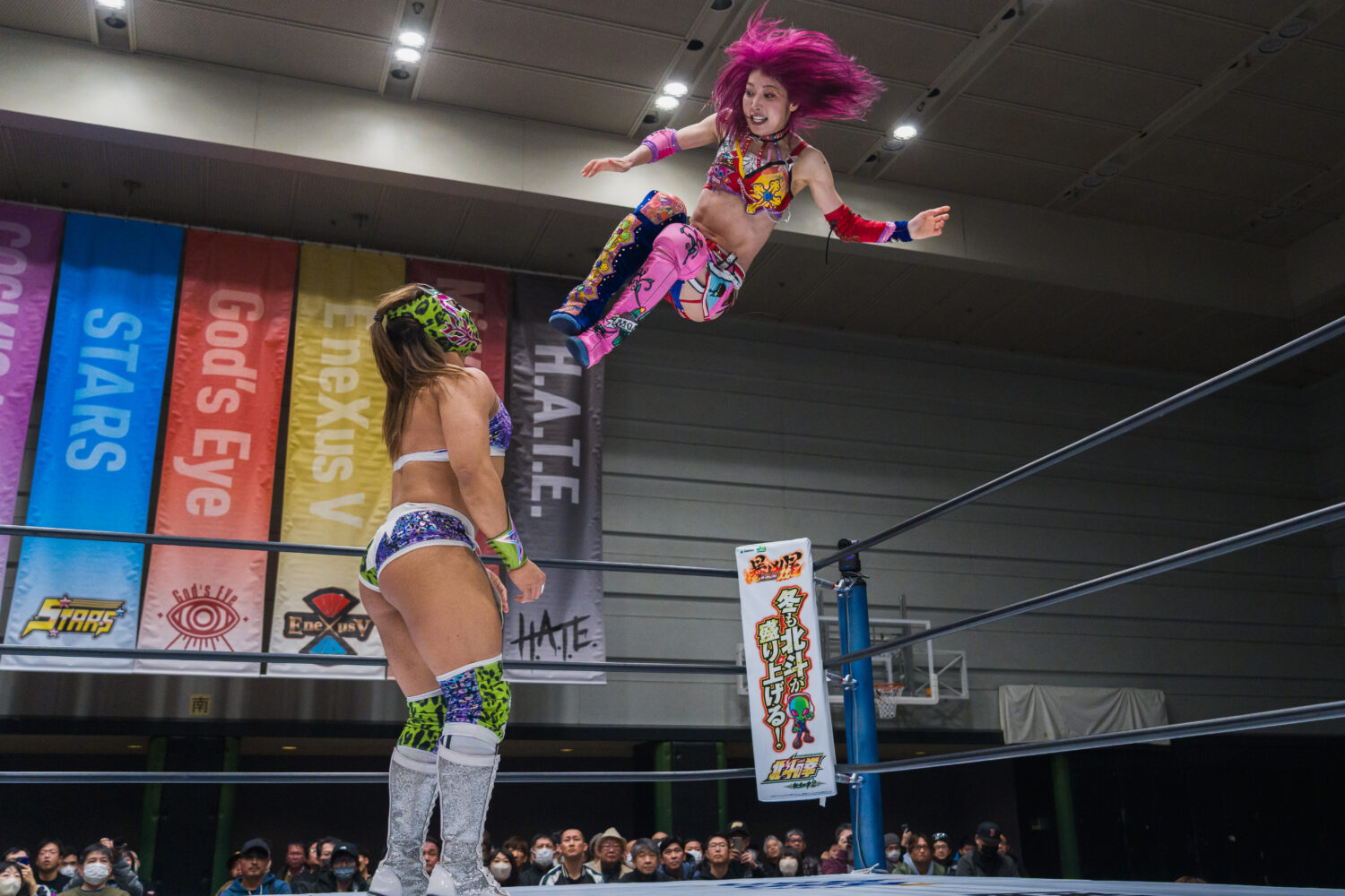 飯田沙耶&向後桃のSTARSと葉月&オリンピア組によるタッグマッチ。1・25高田馬場でのCMLL日本女子王座戦を控える葉月とオリンピアだが、前日とは打って変わりこんどは同じコーナーに立つ。オリンピアと飯田のパワー対決、またメキシコ遠征経験がある向後とオリンピアの対決にも注目したい。