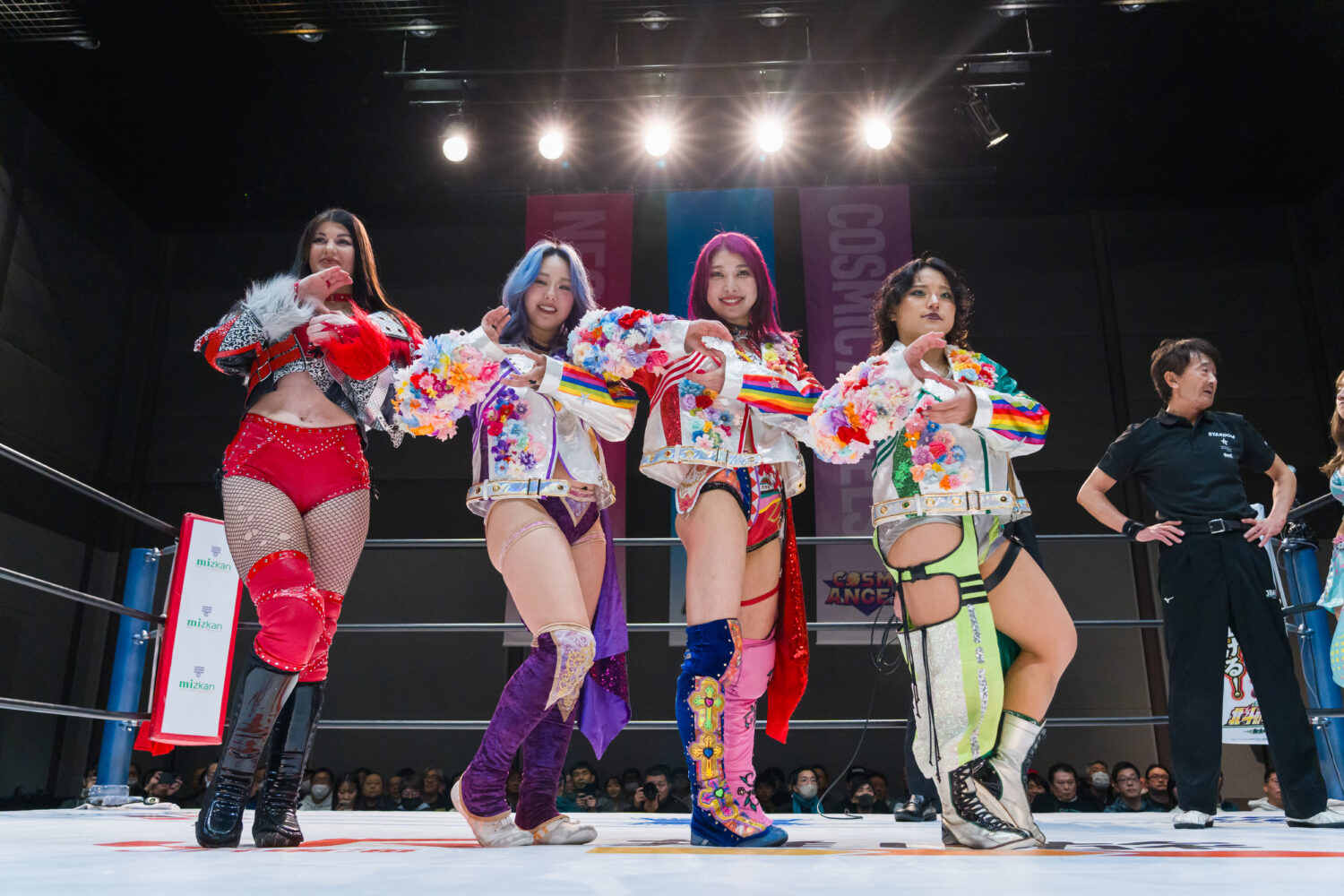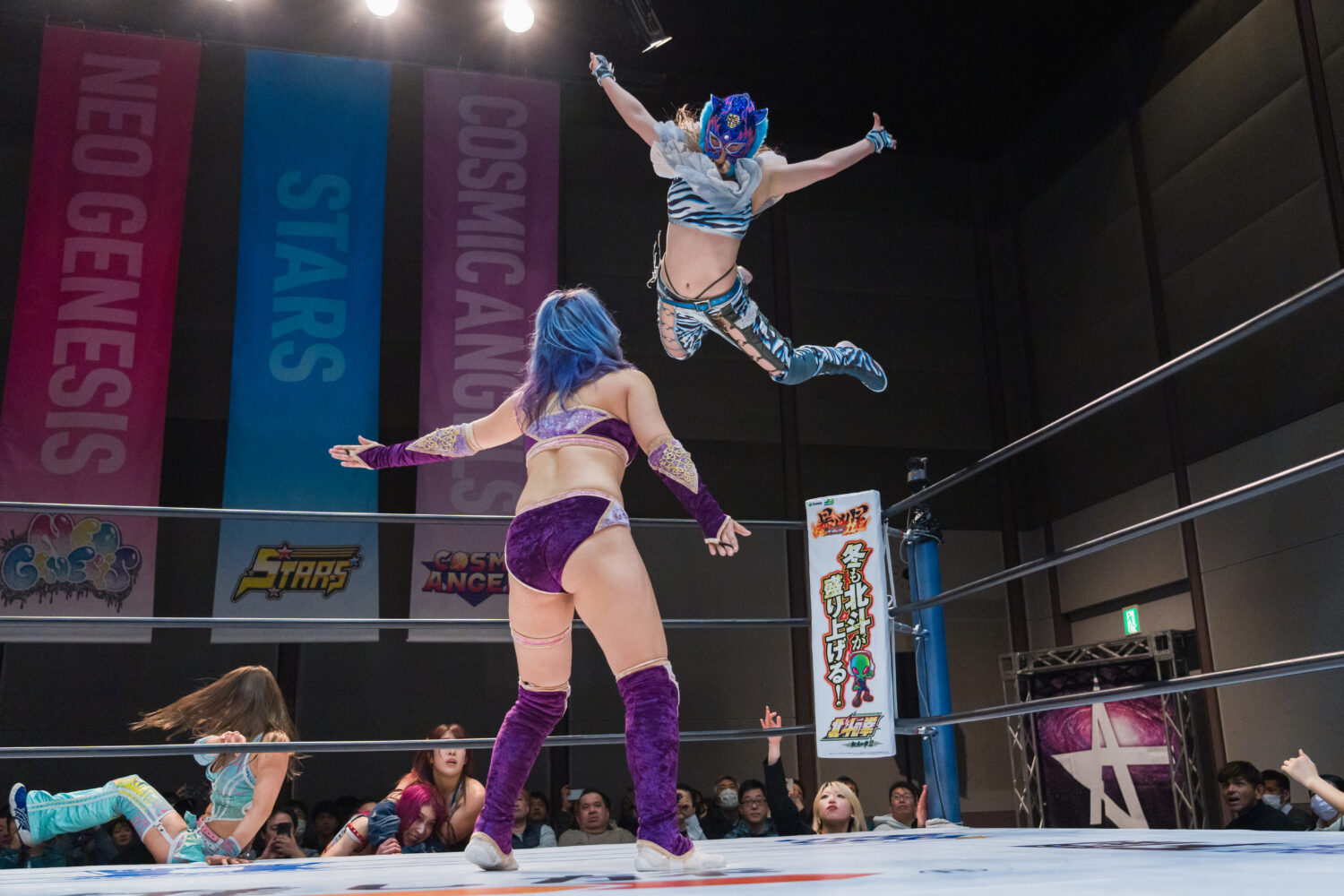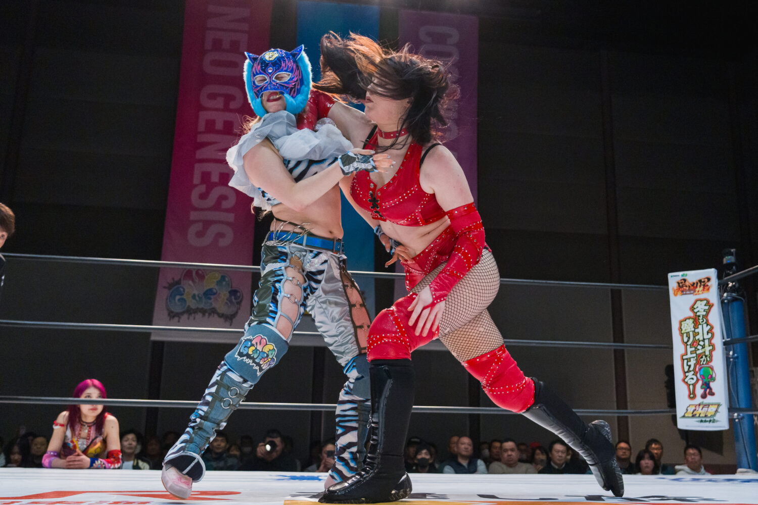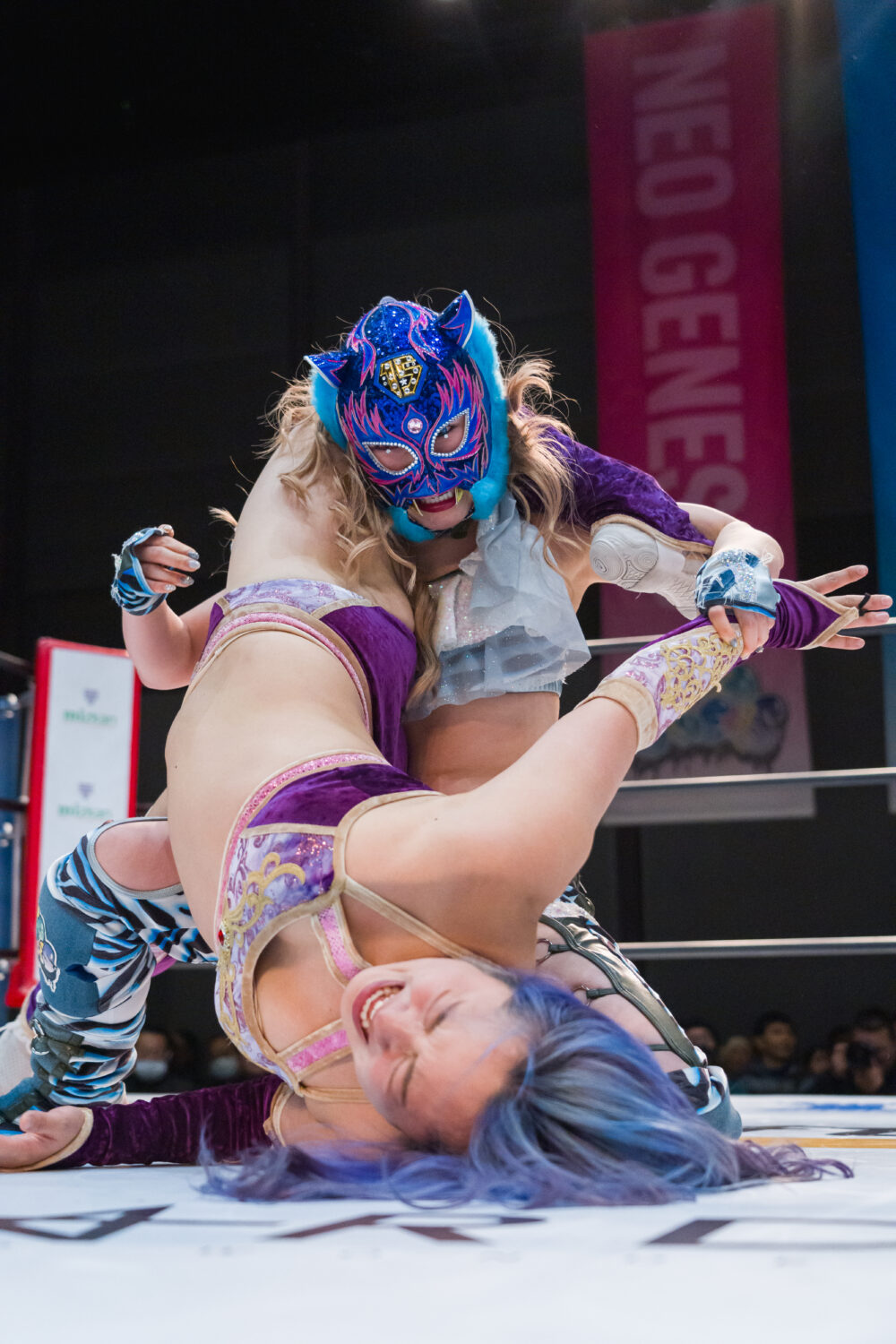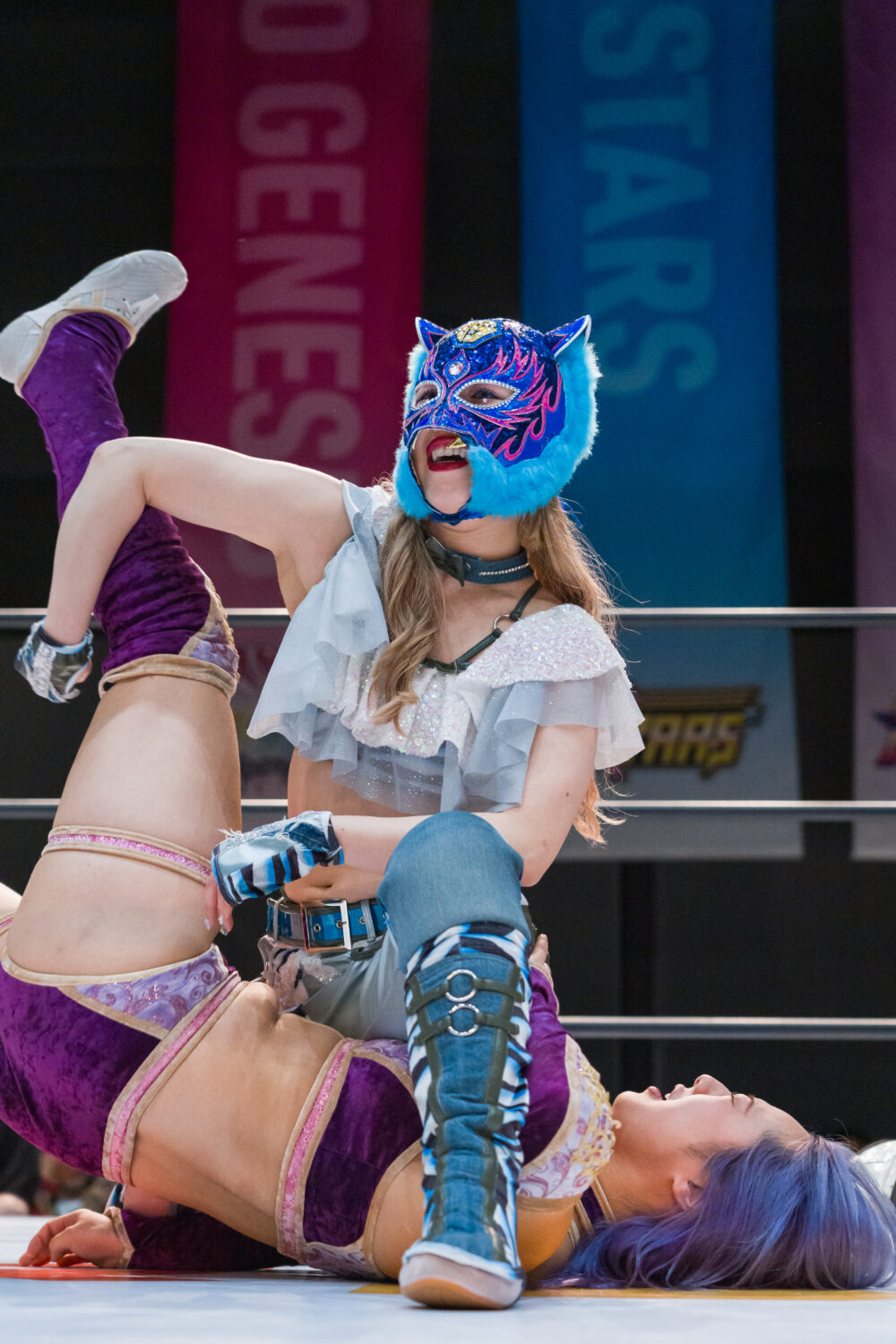 ネオジェネシスのスターライト・キッド&AZM&星来芽依&天咲光由組とSTARSの飯田沙耶&ビー・プレストリー&向後桃&姫ゆりあ組が8人タッグマッチで全面対決。ユニットの総合力が問われるメインイベントになりそうだ。また、1・21後楽園ではゆりあが限定復帰の愛川ゆず季と希望通りに対戦、カードが6人タッグとなったことでキッド、なつぽいとも対戦することにもなった。よってこの試合はキッドとの前哨戦の意味合いも含まれている。