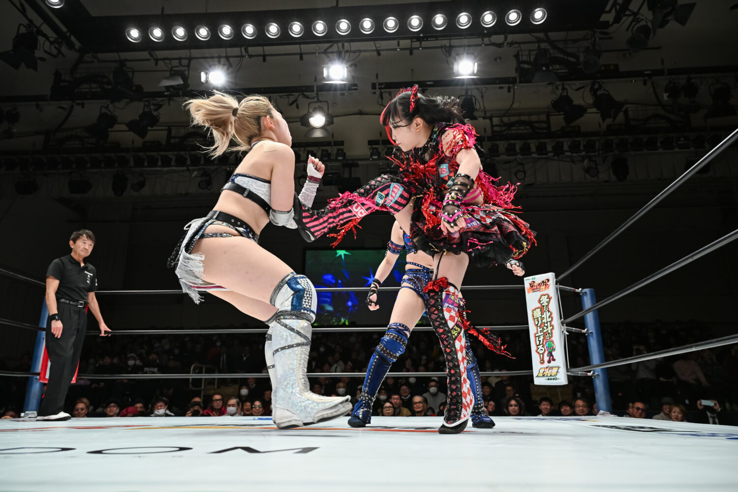 安納サオリ、稲葉ともか。伊藤麻希がいっせいに対戦する3WAYマッチ。前回の後楽園大会における伊藤のスターダムデビュー戦でタッグを組んだ安納だが、息が合わずに敗戦。この試合で安納が伊藤とどう向き合うか。また、スターダムマットでまだ白星のない伊藤がどんな闘いを仕掛けるか。ともかとの遭遇も見どころのひとつだ。