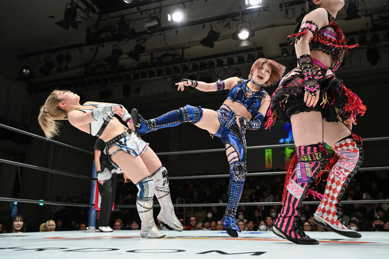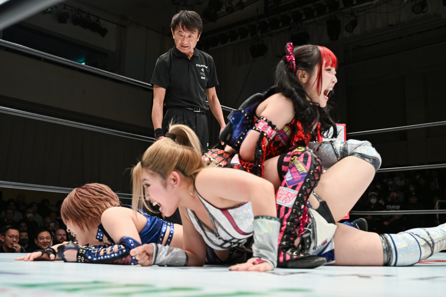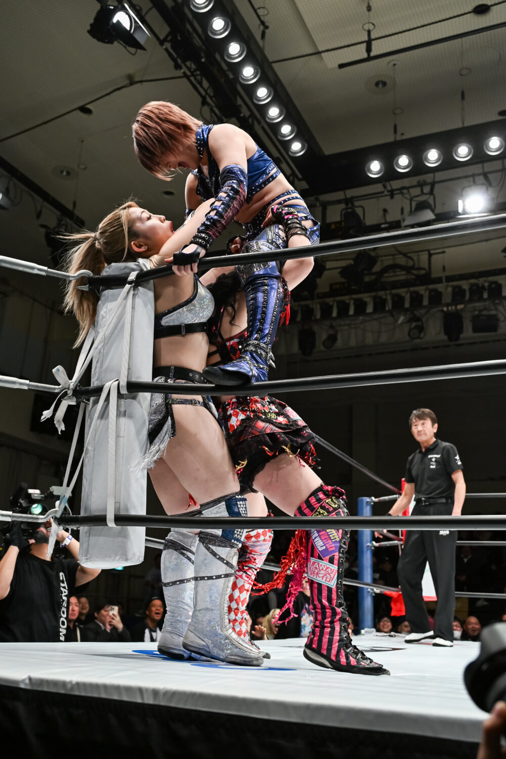 伊藤がともかに体当たり。伊藤が「安納さん、今日は伊藤は安納さんの犬になります」と話しかけ、安納を裏切りの丸め込み。とモカを蹴飛ばすと「安納さん一緒に行きましょう」と呼びかけ連係、安納の前蹴りを呼び込む。伊藤が「お待たせしました。安納さん世界一美しいのやってください」。安納は照れながらコーナーに上がり「世界一…」と言いかけたところで伊藤が攻撃。安納はともかに「やっちまえ!」と声をかけ、ともかが伊藤にサッカーボールキック。安納とともかで伊藤を攻撃。しかし伊藤がまとめてDDT、ともか、安納に顔面ウォッシュ。さらに、2人まとめて逆片エビ固め。エスケープを許した伊藤は安納を落として、ともか向き合う。エルボーの打ち合いから、伊藤がヘッドバット連打、ともかが回し蹴り。ともかへ安納がミサイルキック。バックを取られたともかがこらえる。そこに伊藤がDDT、安納がジャーマン。安納がともかのバックを取る。伊藤が向かっていくと、安納とともかがバックの取り合い。スタナーは安納に決まり、伊藤がぼう然。ともかが安納と伊藤を蹴り倒す。ともかが伊藤を丸め込もうとすると、安納が割って入りスペシャルポテリングでともかを押さえ込んだ。