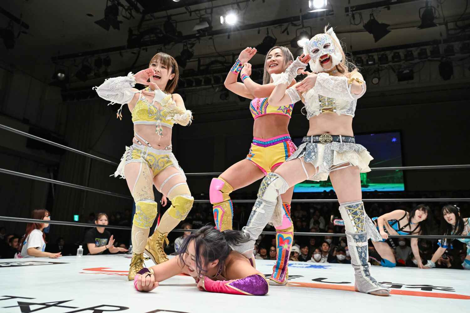 愛川「スターライト・キッド、なつぽい、勝ったぞ! 最高で最強のタッグ、ありがとうございました。おい、ゆりあ! 危なかったぞ、私!レジェンド、頑張りましたよね。我々3名、スターダムの白いベルトを巻いたことがある選手。強いだろ。みなさん、またどこかでお会いしましょう。ありがとうございました!」