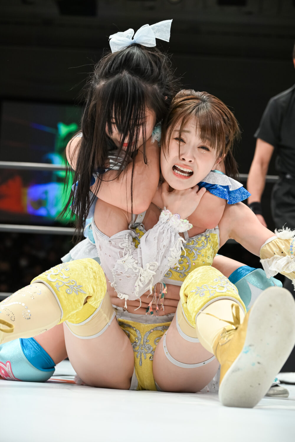 ゆりあ「まずは愛川さん、ゆりあを逆指名してくださってありがとうございました。でも、今日が一番ゆりあの中で、人生の中で一番悔しい日になりました。現役のゆりあが負けるとかありえないと思うし、今日、愛川さんを超えてゆりあが新しいグラドルレスラーになろうと思ってたのに。今日も(年末のバトルロイヤルと)同じ技で負けてしまって。ずっと気持ちは負けてなかったけど、体が今日負けてしまって、すごい自分にも悔しいし、愛川さんに負けたこともすごい悔しいです。限定復帰って言ってたけど、自分が負けたままで絶対終わるのは嫌なので。次は絶対、シングルで闘わせてください。そのときは愛川さんの心をボロボロに、ズタズタにして、ゆりあが新のグラドルレスラーを名乗るんで、検討してください」