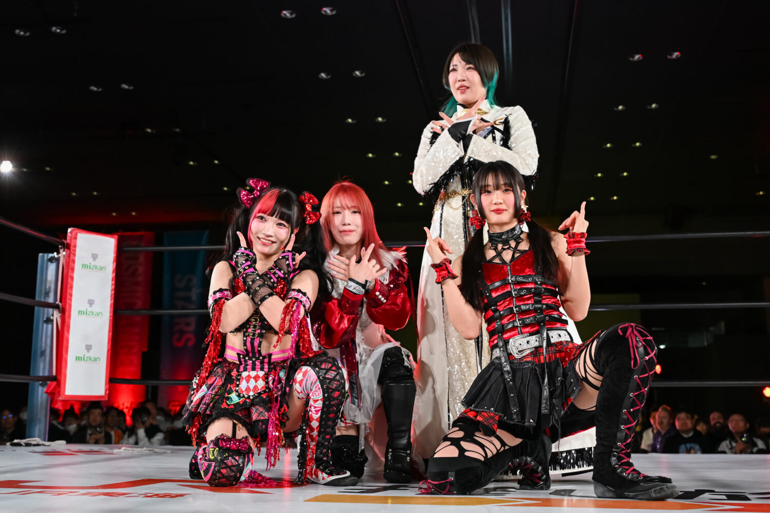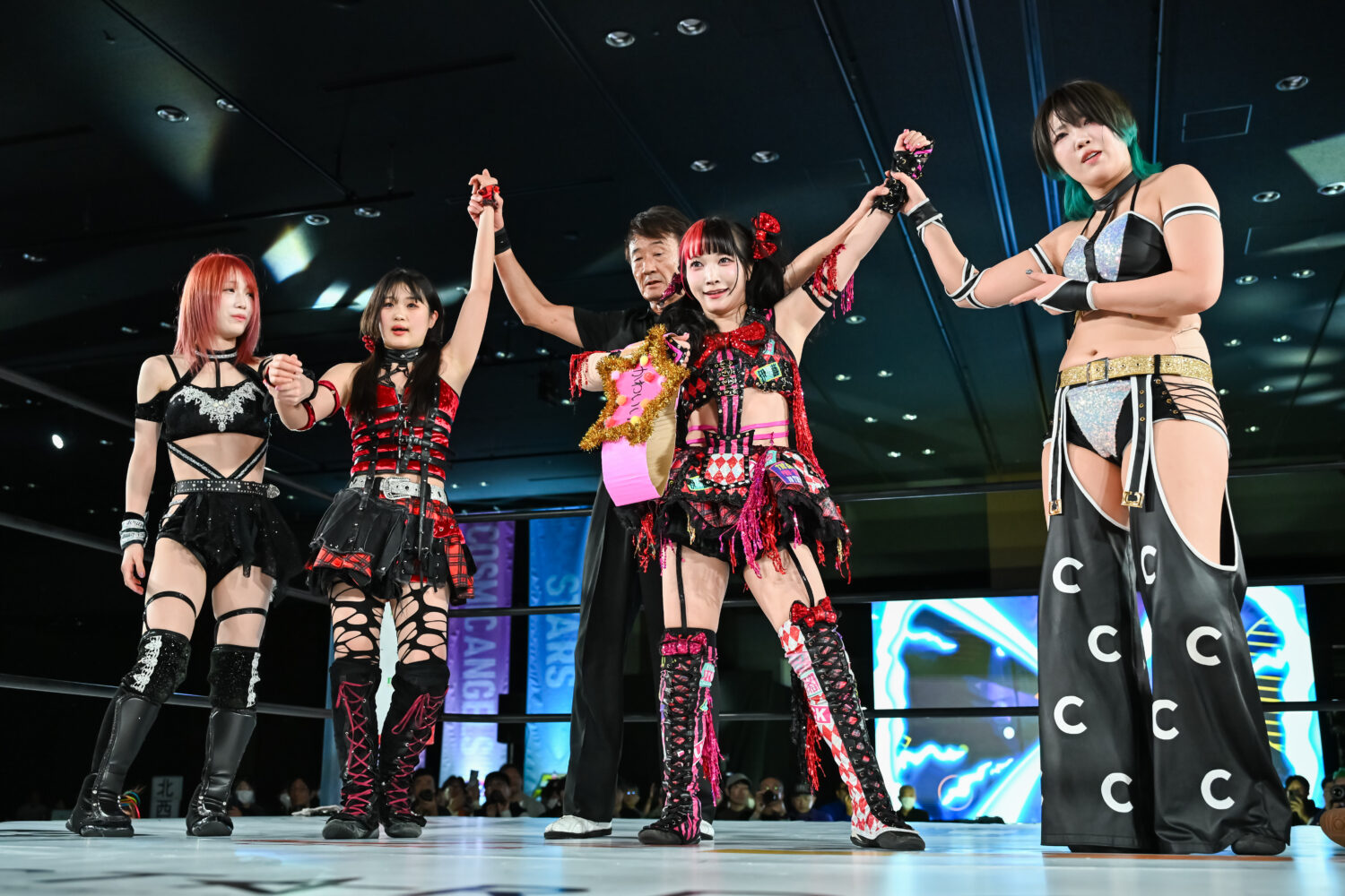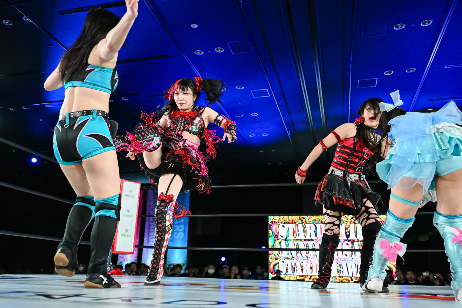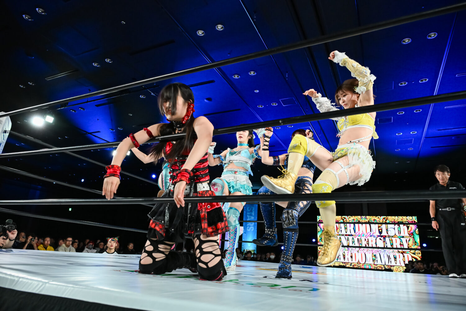 伊藤と古沢が最初に入場。ゴッズアイがリングインすると、伊藤と古沢もポーズに加わる。さくらと伊藤が睨み合い。古沢が伊藤を下げて先発を買って出る。試合は古沢と玖麗でスタートし、腕の取り合い。古沢がアームホイップ、コズエンが乱入してドロップキック。古沢が返すが相手コーナーで捕獲される。安納となつぽいが連係で古沢を攻め込む。さくらが古沢にサッカーボールキック。なつぽいが古沢にヘアーホイップの連続から背中にドロップキック、エルボー連打。古沢がコルバタからドロップキック。レディがなつぽいにショルダータックル。ジャイアントスイング狙いをなつぽいが丸め込む。なつぽいの突進を止めてレディがジャイアントスイング20回転、相手を分断してビッグブーツ。伊藤がなつぽいに串刺しエルボーアタック。世界一可愛いナックルをなつぽいがさせず。伊藤となつぽいが睨み合う。伊藤がエルボー、なつぽいもやり返してエルボーの打ち合い。なつぽいがネックブリーカーも、伊藤が返す。さくらが伊藤へ串刺しニーアタック、ドロップキック。伊藤が返すと、エプロンでドロップキック。場外戦となり、伊藤が世界一可愛いをアピールしてリングに戻る。しかし、さくらが伊藤をカバー。伊藤が返すと、さくらがバックを取る。伊藤が切り返して逆エビ固め。玖麗がカットし混戦に。10分経過。安納となつぽいがアシストしさくらが伊藤を丸め込む。しかし古沢のカットが間に合う。さくらと玖麗が合体、しかし伊藤と古沢がスタナーで競演、伊藤がさくらを押さえ込むと3カウントが入った。