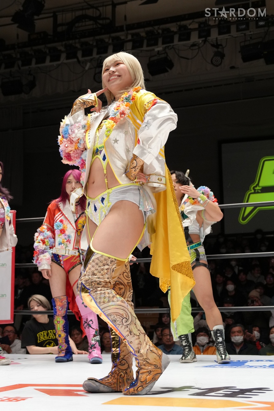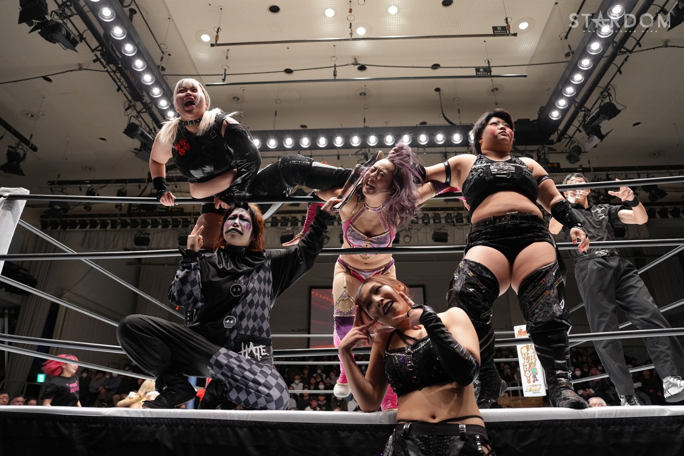 向後とあずさが先発し、ロープワークを展開。向後がコルバタからドロップキックで先制。ゆりあがタッチを求めて、あずさにドロップキック、STARSを呼び込み連係で攻め込むと全員でドロップキックを見舞う。あずさはゆりあの髪をつかんでマットに叩きつけるとサッカーボールキック、フェイントをかけて顔面を蹴り飛ばす。琉悪夏がゆりあに串刺しボディーアタック、ロープに固定してH.A.T.E.で攻撃を加える。ナツコがゆりあに串刺しラリアット、ショルダータックル、ボディープレス。ゆりあがナツコにドロップキック、向後のスタナーからゆりあがミサイルキック。羽南がナツコに突進も、琉悪夏が妨害してナツコと合体ショルダータックル、合体ボディープレス。しかし、羽南がかわして向後とダブルのドロップキック、2方向でダイビングボディーアタック。羽南はナツコのバックを取る。ナツコがこらえてラリアット、かわされるがカウンターでクロスボディー。飯田がフキゲンにショルダータックル、フキゲンがサミング。串刺し攻撃は飯田がかわしていく。フキゲンが飯田をかわすとH.A.T.E.が次々と串刺し攻撃。フキゲン、琉悪夏、ナツコが次々とセントーン。フキゲンはブレーンバスターを予告して丸め込む。ナツコと琉悪夏が向後を捕獲も、羽南とゆりあがカットして、向後が場外へプランチャ。フキゲンが戻され、STARSが合体フェースクラッシャーを決める。しかし、フキゲンが肩を上げる。飯田はフィニッシュを宣言してラリアットもフキゲンがかわす。飯田が切り返して飯田橋で3カウント。