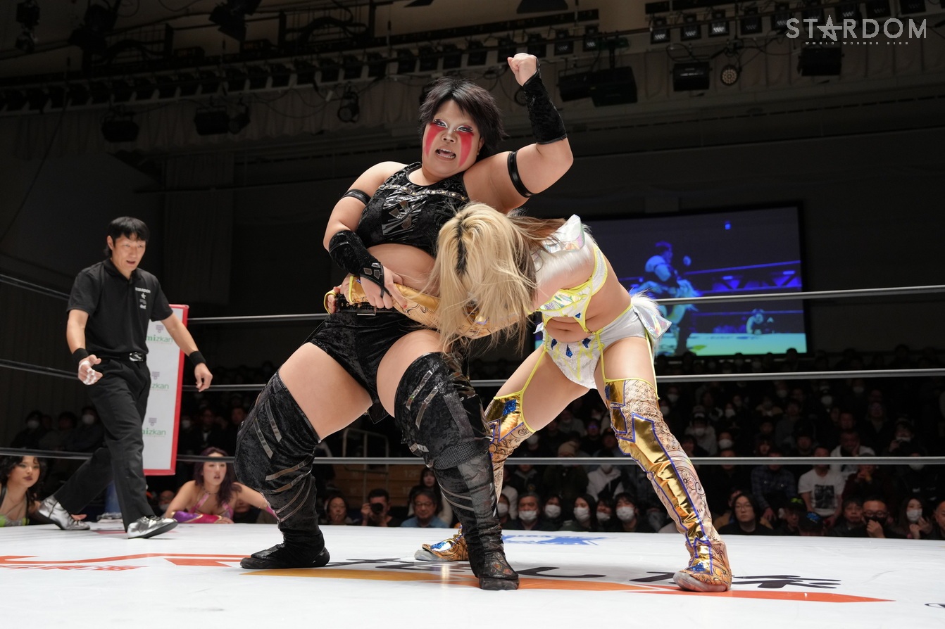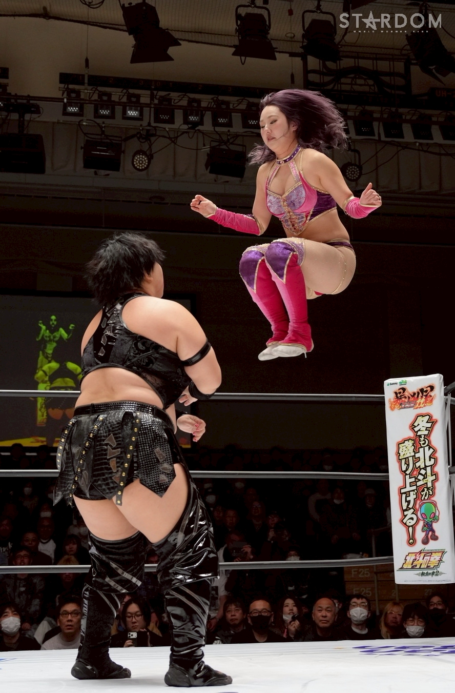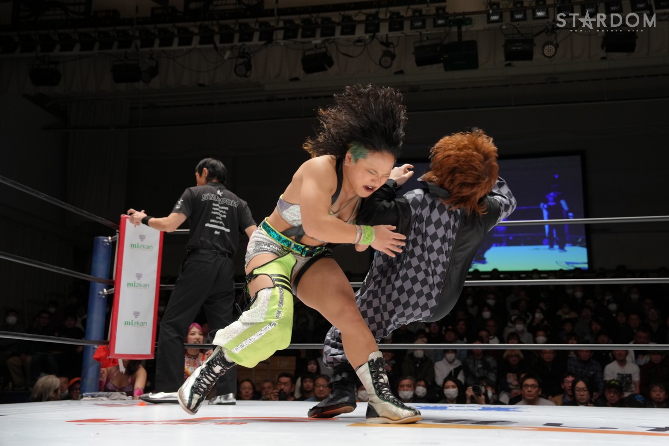 STARSの羽南&飯田沙耶&向後桃&姫ゆりあ組とH.A.T.E.の刀羅ナツコ&琉悪夏&フキゲンです★&稲葉あずさ組が8人タッグマッチで対戦。2・7大阪でのゴッデス・オブ・スターダム王座戦が決まった羽南とナツコ&琉悪夏組には前哨戦だ。