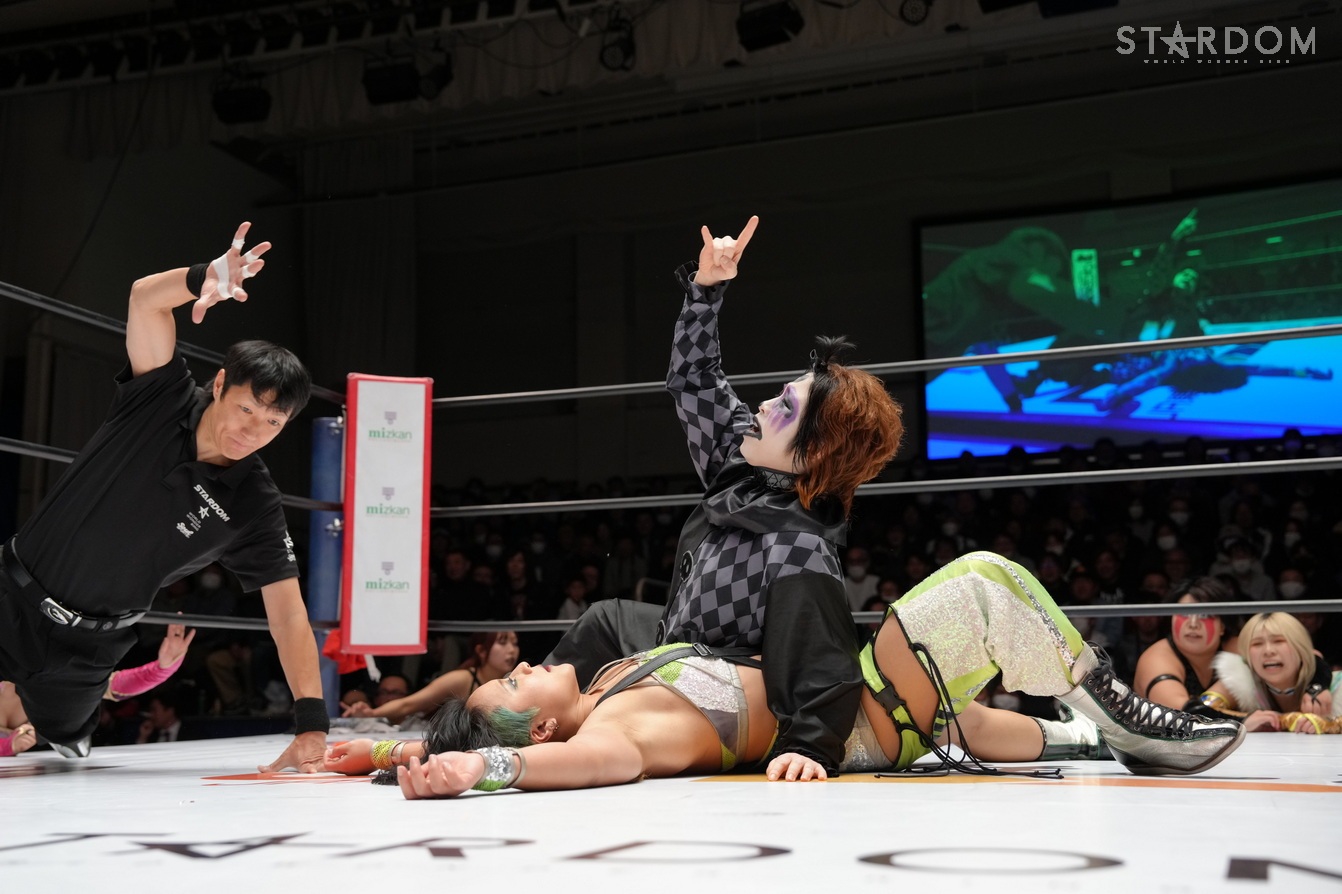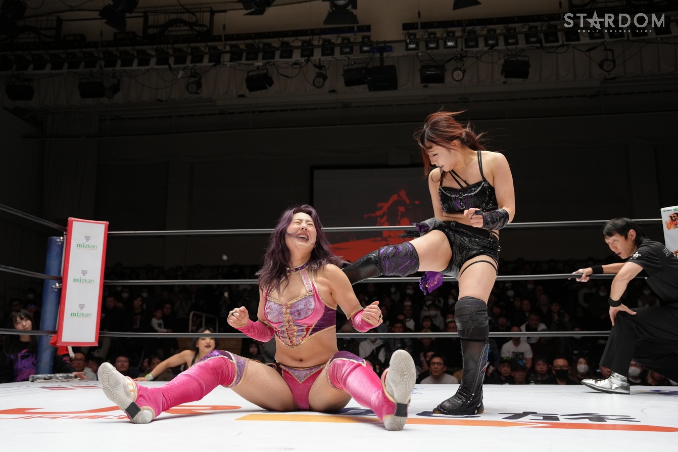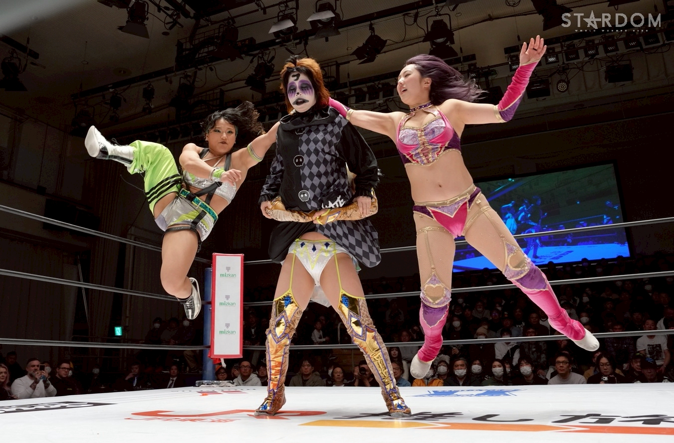 STARSの羽南&飯田沙耶&向後桃&姫ゆりあ組とH.A.T.E.の刀羅ナツコ&琉悪夏&フキゲンです★&稲葉あずさ組が8人タッグマッチで対戦。2・7大阪でのゴッデス・オブ・スターダム王座戦が決まった羽南とナツコ&琉悪夏組には前哨戦だ。