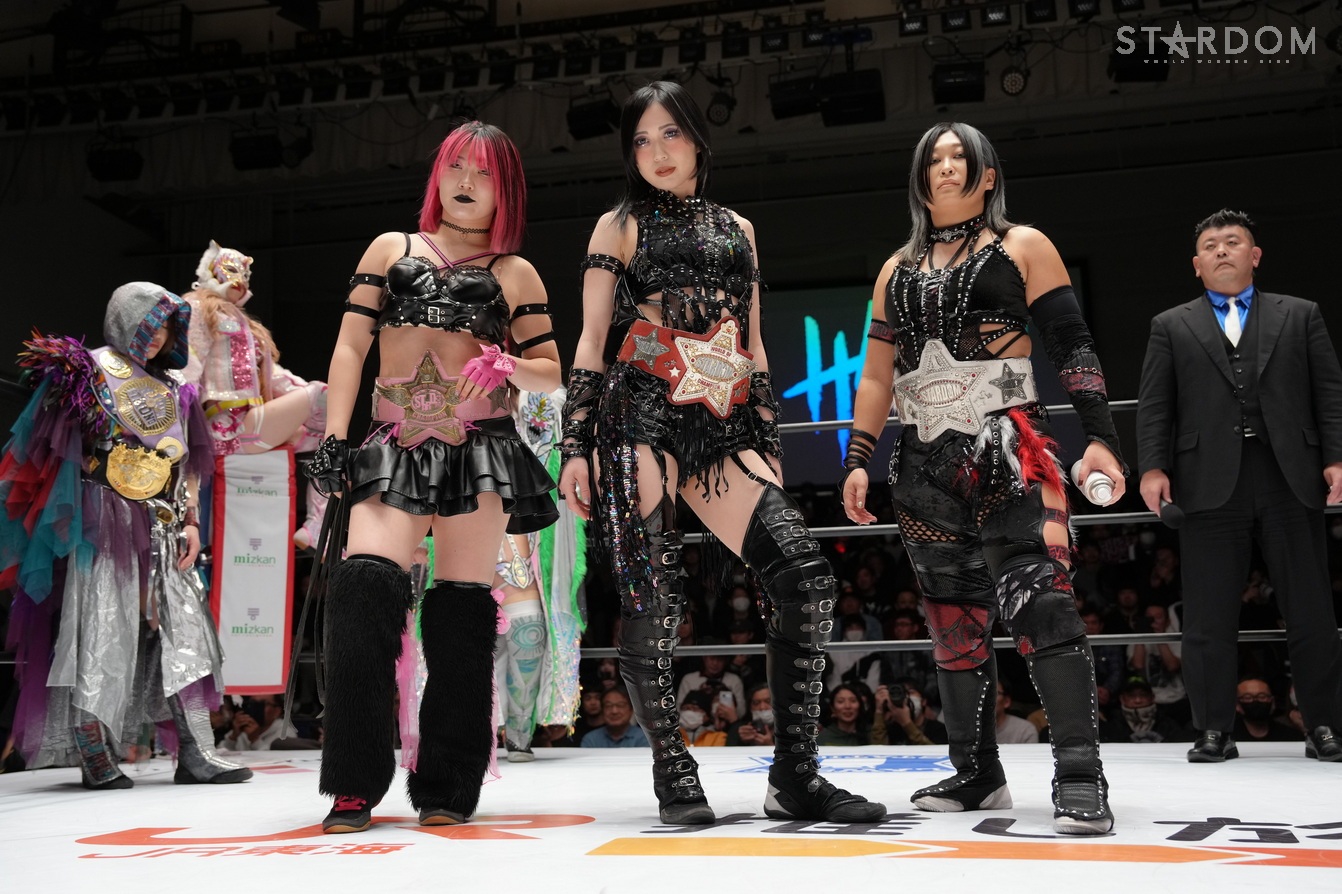 キッド組が奇襲を仕掛け壮麗とドロップキックの競演で相手を分断。キッドが上谷を踏みつけてボディースラム。キッドが上谷に向かっていこうとすると、吏南がリング下から足を引き場外戦に。上谷がキッドをロープに固定、キッドが髪を引いて場外に落とす。上谷がキッドをエプロンに叩きつけ、リングに戻す。小波がキッドにキャメルクラッチ、サッカーボールキック。吏南がキッドのマスクをつかんでマットに叩きつける。キッドが返すと、クロスボディーアタック、その場跳びムーンサルト。朱里が吏南にドロップキックも上谷が乱入。しかし朱里がコードブレイカー、壮麗と連係でH.A.T.E.を攻撃。朱里と吏南がエルボーの応酬、吏南が連打し唾を吐きつけて払い腰、ドロップキック。小波が朱里にニーアタック、ミドルキック。朱里がサッカーボールキックからPKも2カウント。壮麗が小波に串刺しボディーアタック、ショルダータックル。小波が返すと、吏南が介入し小波が壮麗にスライディングキック、フィッシャーマン、ワキ固め、ミドルキック。壮麗が小波に逆水平、小波はミドルで応戦。小波が顔面をかきむしるが、壮麗がショルダータックル、ニー、ブレーンバスター。小波が返すと、壮麗にスリーパー。壮麗が切り返すが小波がチェーンを手に。しかし、壮麗がラリアット、ブルーサンダー。10分経過。壮麗がラリアット狙いも小波がハイキック、ジャーマン。壮麗が立ち上がりラリアット。両者ダウン状態からタッチ。上谷とキッドがエルボーの打ち合い。上谷が連打、キッドがこらえるが上谷が打ち勝つ。しかしキッドあは上谷をエプロンに送り出してスワンダイブさせずにチョップ、ドラゴンスクリュー、ストレッチマフラー。しかし、吏南がカットに入る。キッドの突進を上谷がかわしてH.A.T.E.が串刺し攻撃。吏南と小波の蹴りから上谷が二段蹴り。朱里がカット成功。吏南と小波が合体も、朱里がこらえて壮麗がまとめてラリアット。キッドは場外へプランチャで飛ぶ。壮麗がラリアット、朱里がニーアタック、キッドが旋回式ダイビングボディープレス。しかし、上谷が返してみせる。キッドはタイガースープレックスの構え。上谷がこらえスピンキック、旋風脚。しかし、キッドがかわしてストレッチマフラー、黒虎脚殺へ。そこに吏南と小波がカットに入る。朱里と壮麗が援護してキッドが黒虎脚殺をキープ。上谷がなんとかエスケープして15分経過。キッドは上谷を引き起こし持ち上げ黒虎天罰。コーナーに上がると吏南がムチで殴打し、小波がバックを取る。上谷のダイブから小波がジャーマンにつなぐ。キッドが返すと、上谷はキッドを引き起こしスタークラッシャー狙い。キッドが切り返すとマットに叩きつける。キッドはタイガーの構え。琉悪夏がボックスで殴打し、上谷がシットダウンボム。しかし、カットされる。吏南が朱里と壮麗にミサイルキック。小波が白スプレーを壮麗に噴射し上谷がキッドに滞空時間をとってのスタークラッシャー。キッドが返せず、上谷がフォール勝ち。