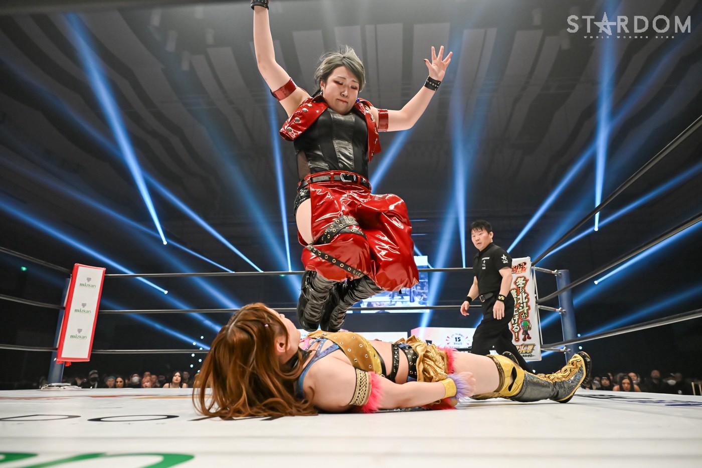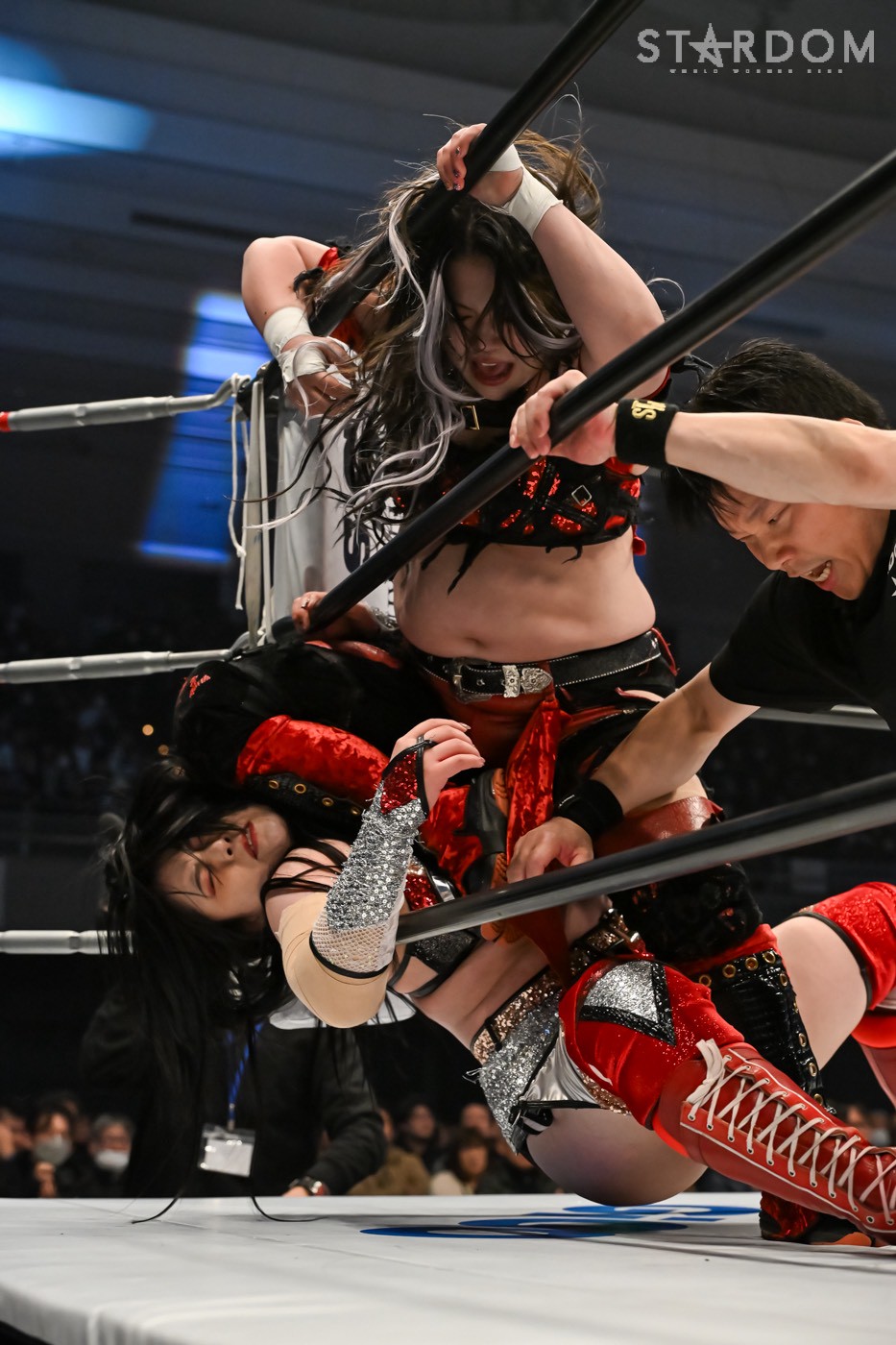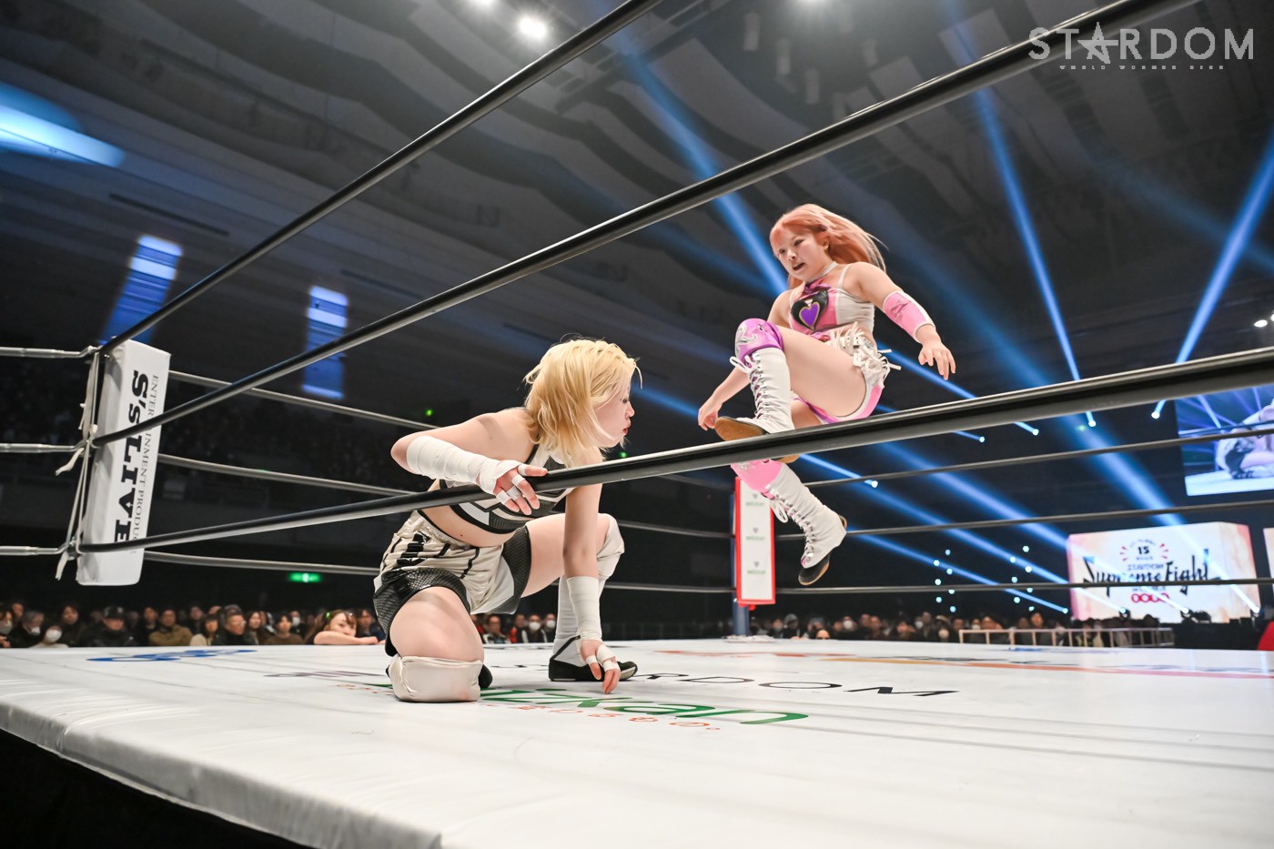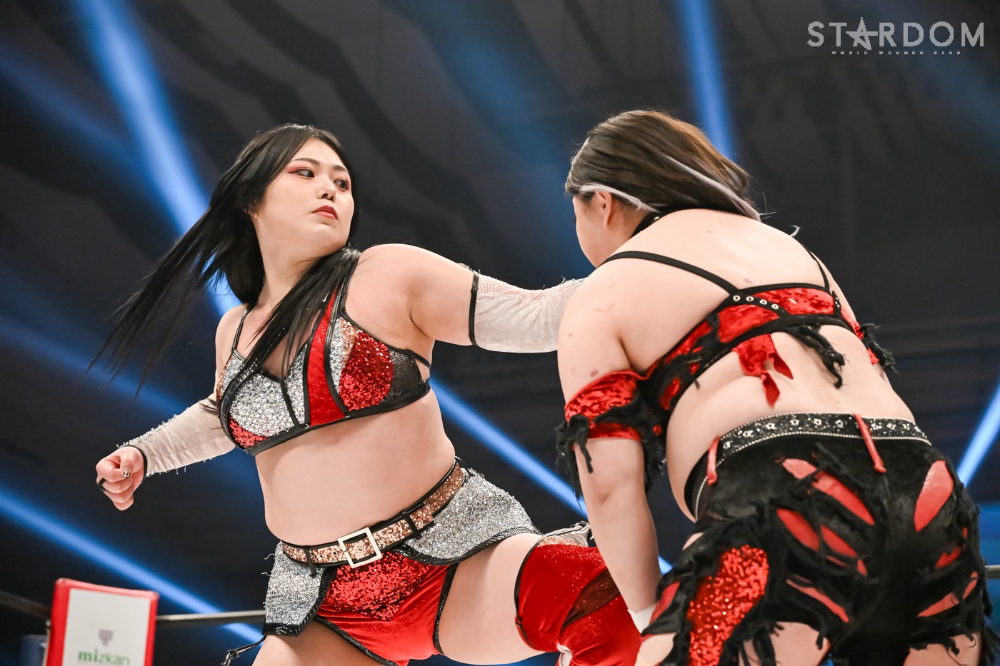 副将は、舞華と鈴季。睨み合いから鈴季がエルボー。舞華もやり返してエルボーを打ち合う。鈴季がフェイントのエルボーで倒すが、舞華がカウンターでパワースラム、ボディースラムを連発。髪をつかみ合い、鈴季がエルボー連打から顔面を踏みつける。舞華が一本背負い、スライディングラリアット。鈴季が返すと、舞華は串刺しラリアット。鈴季が串刺しニーアタックから顔面を踏みつけ、コーナーへ。舞華が止めて雪崩式狙い。コーナー上でエルボーを打ち合い、鈴季が張り手で落とす。5分経過。舞華がヘッドバット、雪崩式ブレーンバスター。鈴季が返すと、舞華はみちドラ狙い。鈴季がリバースフランケンからバックを取る。舞華がこらえると、鈴季を走らせずにバックドロップ、鈴季がウラカンラナも2カウント。残り3分。エルボーが交錯し、両者が倒れ込む。舞華がラリアットも、鈴季が肩を上げる。舞華はみちドラ狙いも鈴季がジャーマン、舞華のラリアットをかわしてテキーラショット。舞華が返すと、鈴季の突進をキャッチし、みちのくドライバー。残り1分。舞華がみちドラを決めるが、鈴季が肩を上げ、そのままタイムアップで引き分けに。