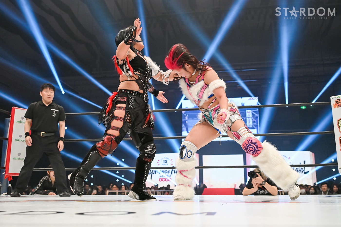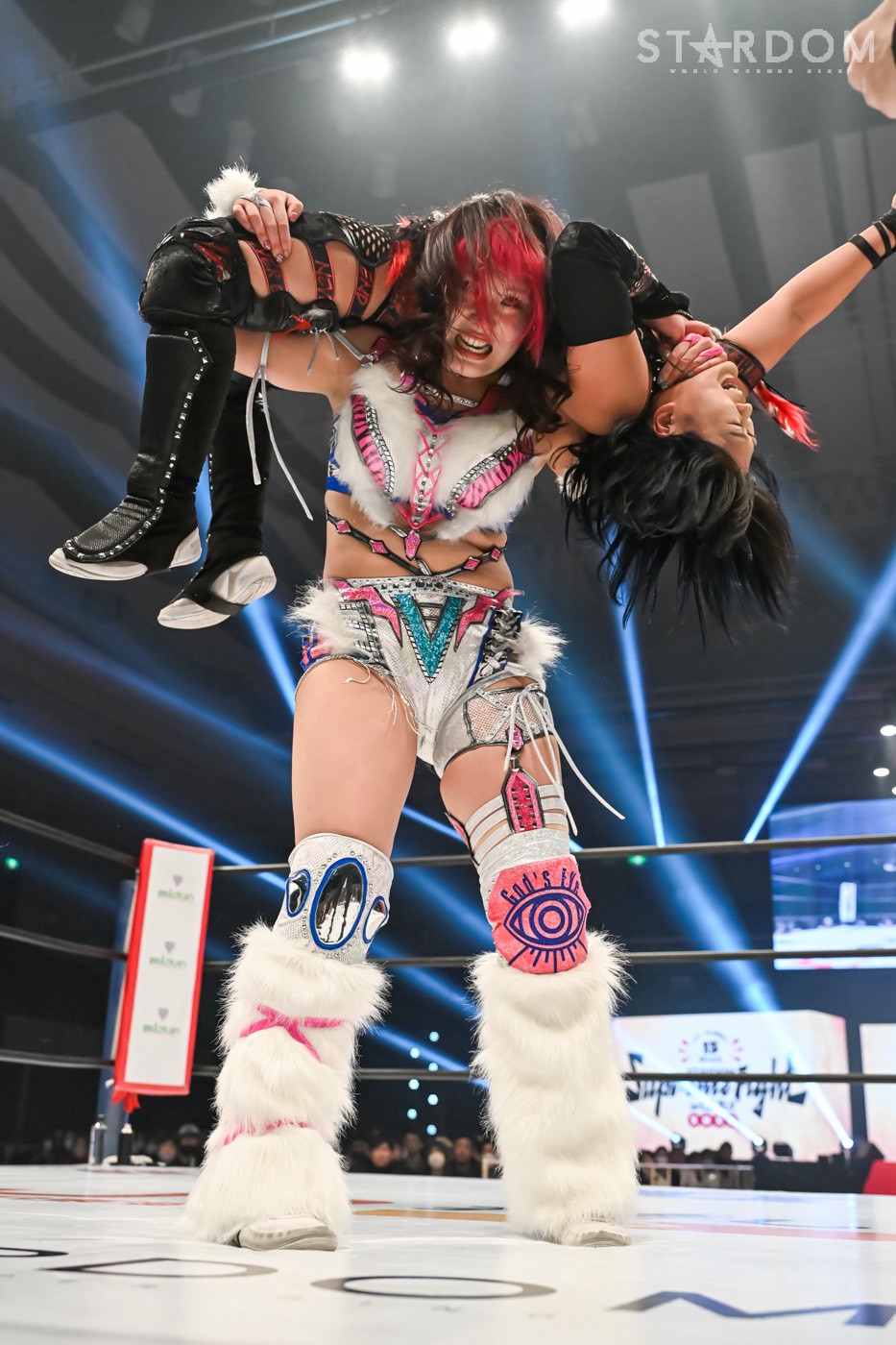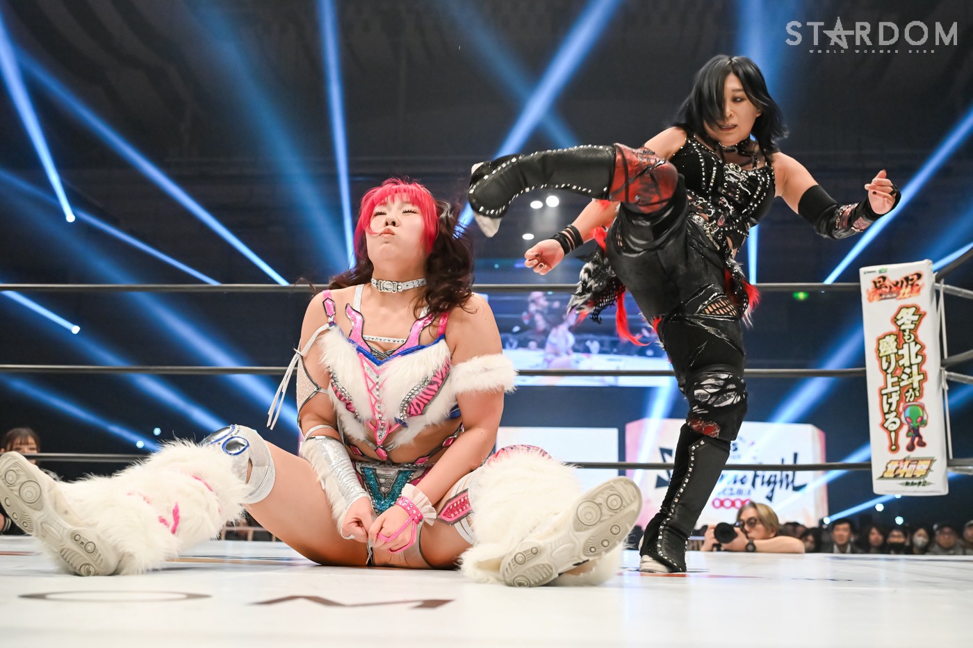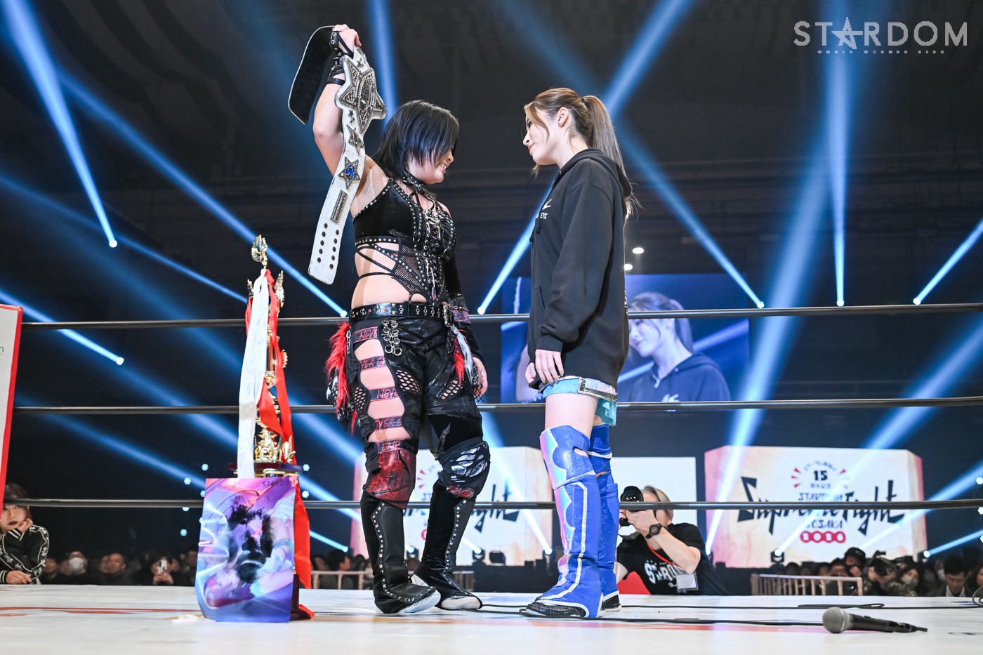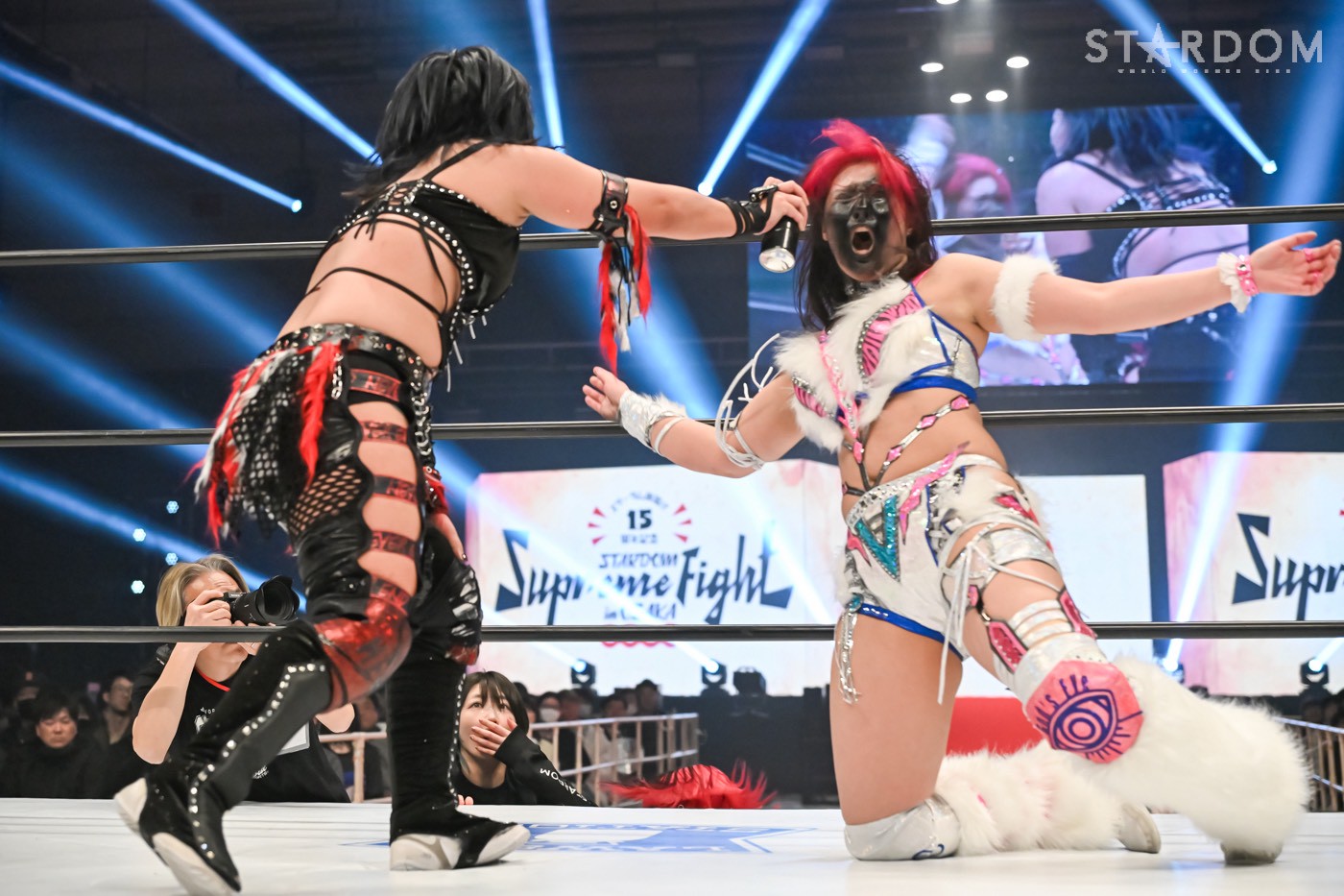 小波と壮麗亜美がワンダー・オブ・スターダム王座を懸けて激突。スターライト・キッドを破り王者になった小波には、3度目の防衛戦だ。白いベルト初奪取を狙う壮麗は、小波への挑戦を直訴。飯田沙耶との挑戦者決定戦に敗れ、年末の両国は悔しい思いを強いられた。さらに小波vs吏南のタイトル戦でも試合を見守るしかなく、その闘いが終わった後、強引に次期挑戦者に名乗り出たのである。壮麗が小波に負けたことのない実績を自信に念願の白いベルトを引き寄せるか、それとも小波が王者の貫禄で返り討ちか?