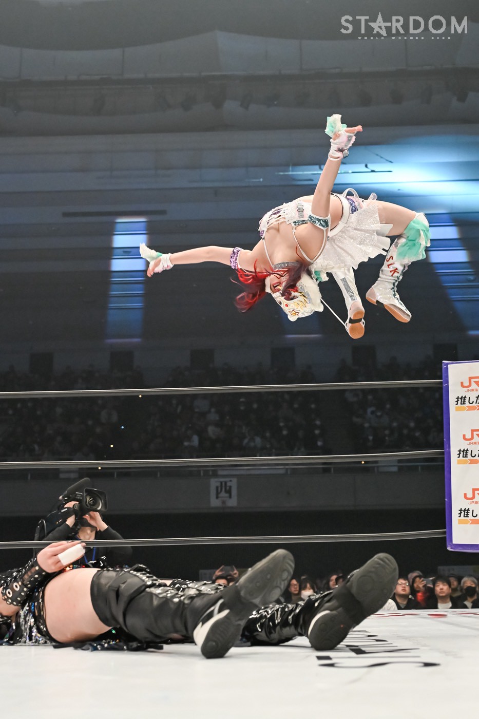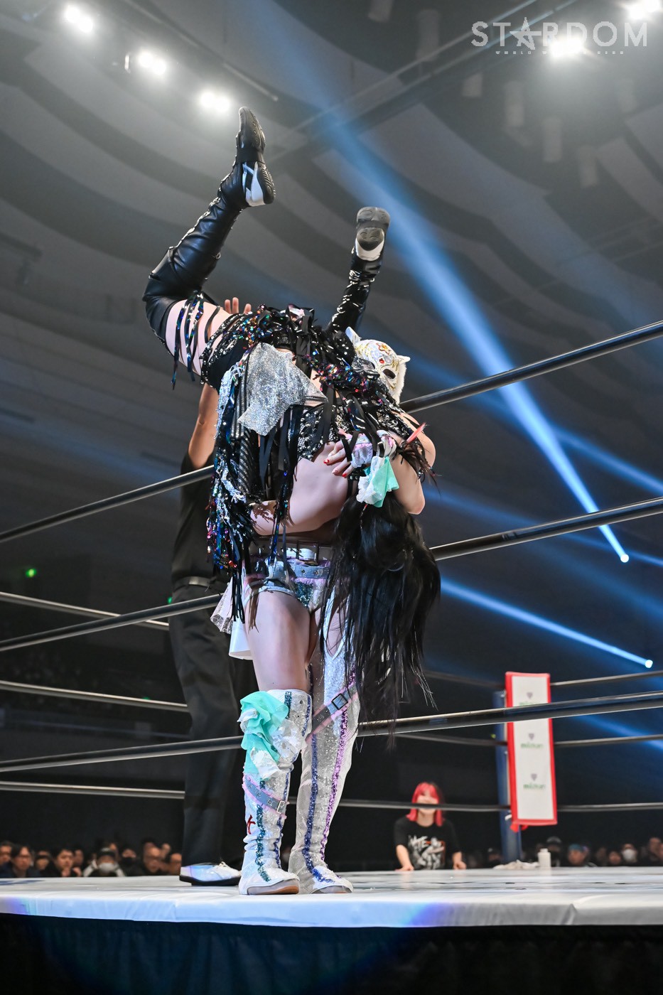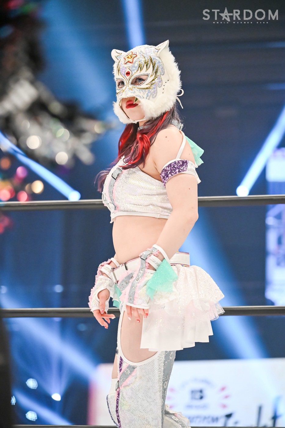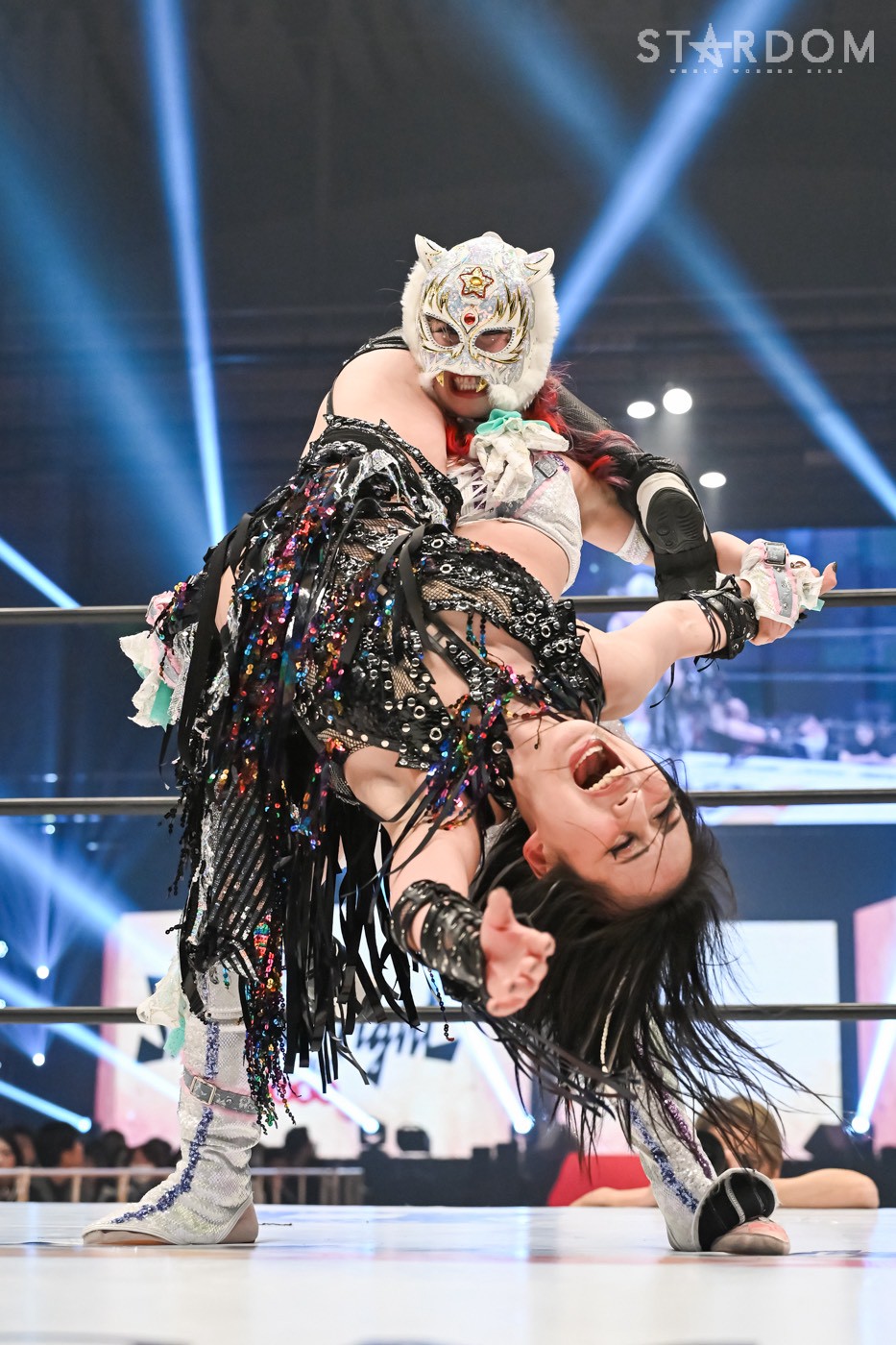 「プロレスは何があるかわかんない。上谷の指が脱臼してから畳みかけたけど、上谷は強かった。でも正直、あんな形で私がベルトを取っても、スターダムそしてプロレス界の顔にはなれなかったと思う。だから、全力で闘ったけど、届かなかった。上谷があんな形になっても闘ったけど届かなかった。プロレスの、私のキャリア10年とワンダーチャンピオンで積み上げてきたものがあっても、上谷という存在とワールド・オブ・スターダムにはまだまだ届かないんだと。私はまだまだこれからなんだと痛感しました。でも私もあそこであんな形になってストップして再開したけど、次は指一本じゃなく、足も折ってやるよ。上谷がやりきれないというなら、私はまた必ず上谷の前に立つ。絶対に勝つ! 上谷への執着心が一番あるのは私だから。そして赤のチャンピオンとスターダム、プロレス界の顔を、初の真のグランドスラムになることを決してあきらめない! 私は欲深きホワイトタイガーだから、絶対また上谷の前に立ってやるからな。完治して必ずまたやろう。ここ(マスク)に手をかけたことも許さないから」