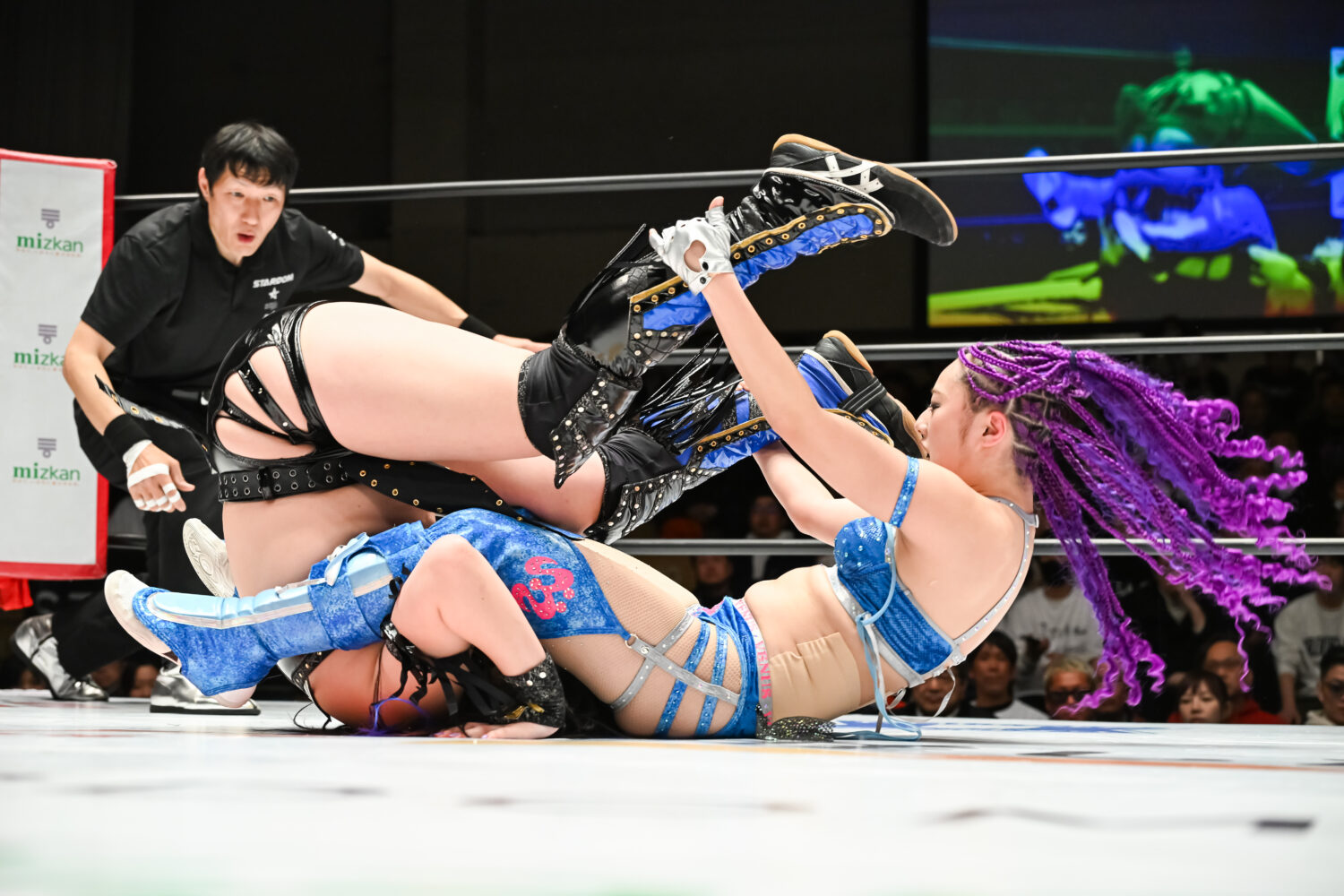 王者に休息はない。試合後は八神蘭奈がリングに登場。「ユニットがなくなって、タッグパートナもいなくなってヒマでしょ?そのベルトかけてタイトルマッチやらせてください」と挑戦状を叩きつけられた。