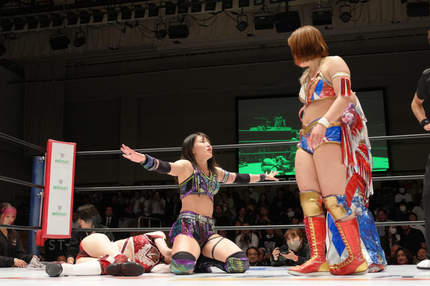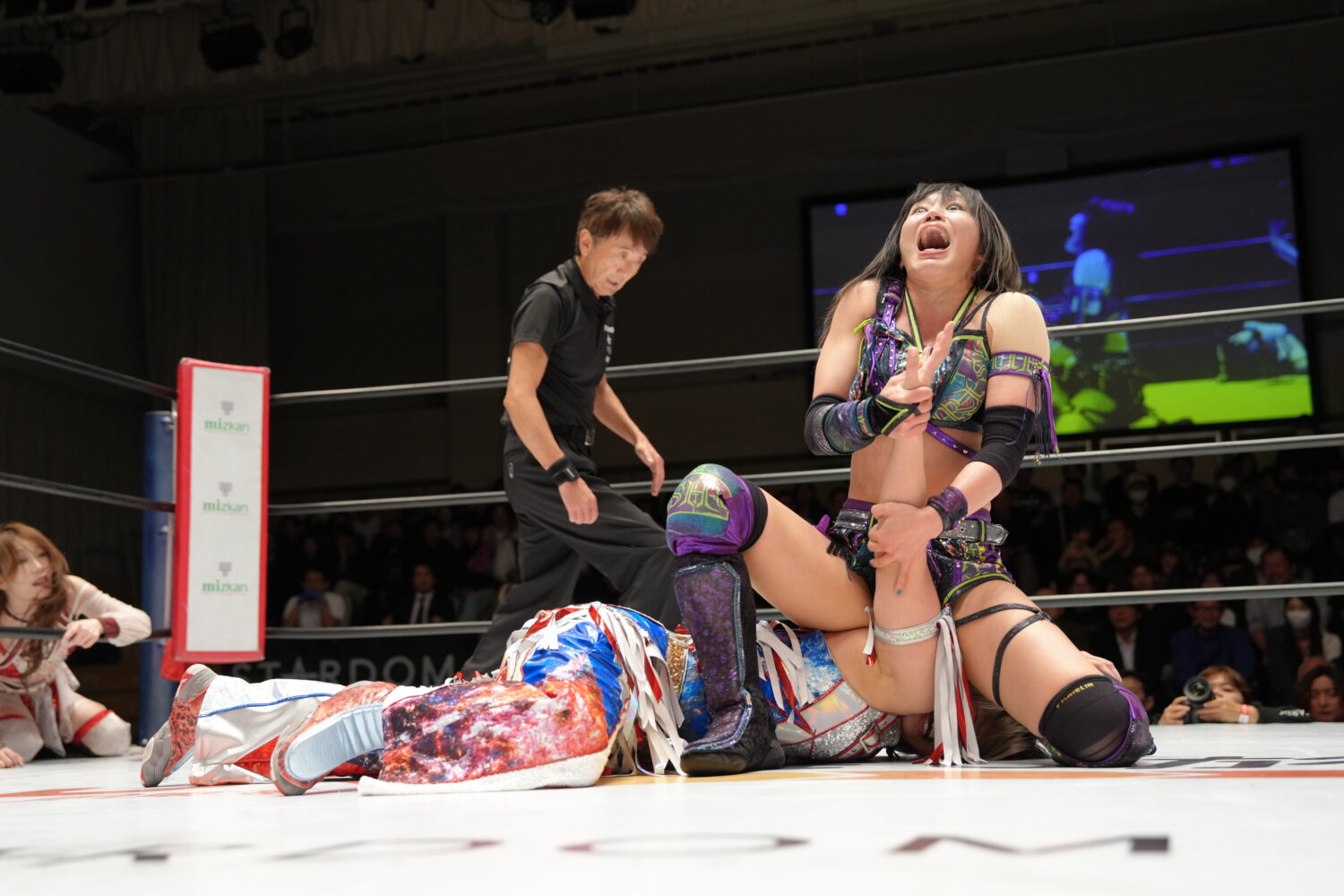 ※裏投げの体勢に入ったところで、鹿島沙希がタップアウト