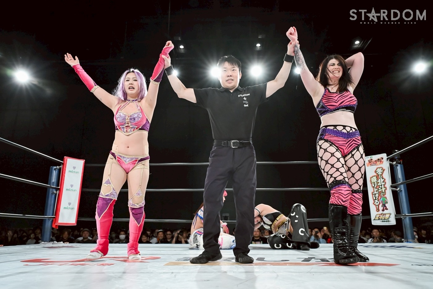 第1試合ではタッグマッチでビー・プレストリー&姫ゆりあが、壮麗亜美&レディ・Cの令和東京タワーズと対戦。「ルーキー・オブ・スターダム」1回戦を突破した姫が捕まる苦しい展開だったが、最後はビーがスクールボーイでレディを丸め込み勝利を奪った。