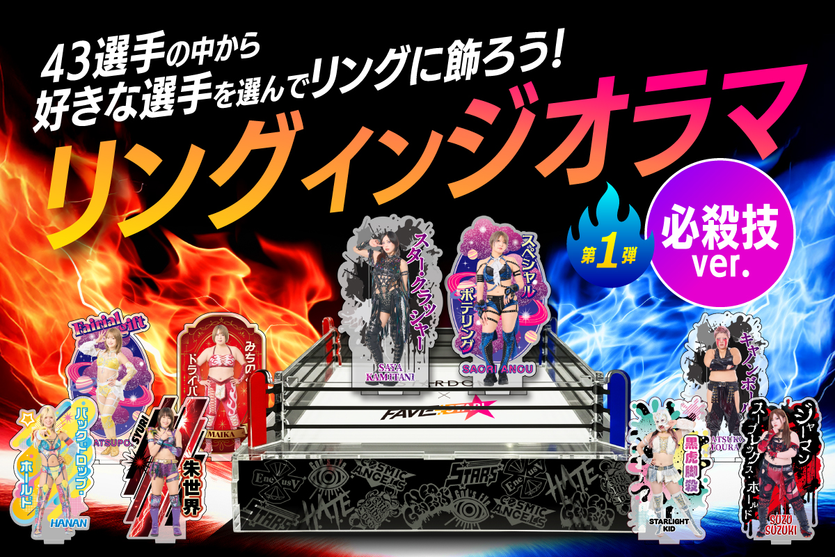 43選手の中から好きな選手を選んでリングに飾れる、「リングインジオラマ」が期間限定で受注販売開始!あなただけのリングマットロゴがリングのデザインになる先着5名様限定のコンプリートセットも!