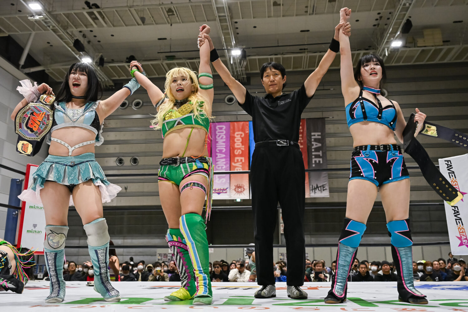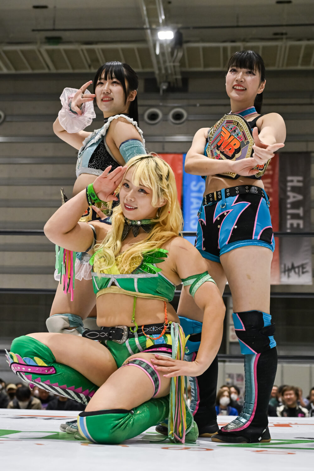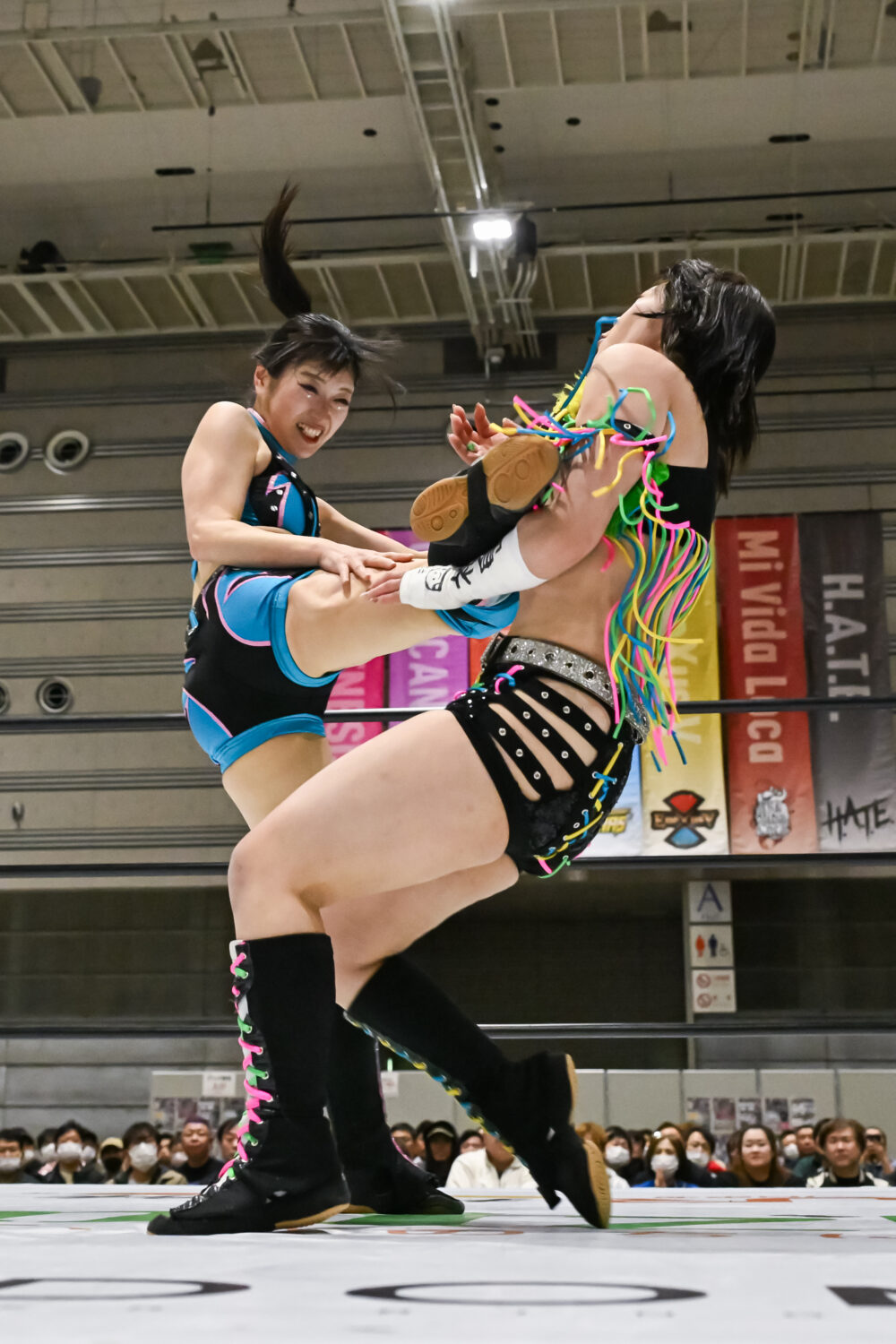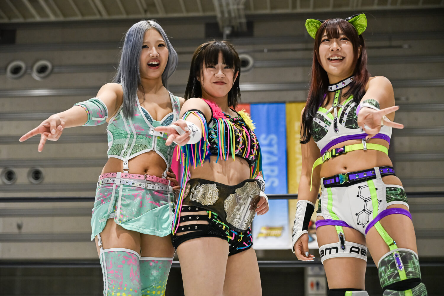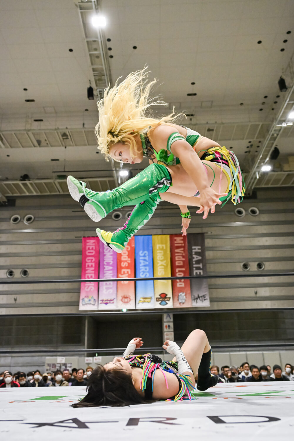 玖麗と天咲が先発に名乗り。ロックアップで組み合い、バックの取り合い。玖麗が腕を取ると、天咲が回転して取り返す。玖麗もやり返してアームホイップからドロップキック。玖麗がロープに振ろうとするとネオジェネが乱入してトリプルドロップキック。星来が玖麗をコーナーに固定してドロップキック10連発。AZMが玖麗にサッカーボールキックを連打。玖麗が返してエルボー連打、AZMがドロップキックをかわして投げを狙うが、玖麗がこらえる。AZMはワキ固めにとって腕固めへ。さくらがカットして玖麗と合体攻撃、2方向からミサイルキックを放つ。さくらがAZMにドロップキック、ボディースラム。AZMが返すと、さくらがミドルキック連打。AZMが「なめんな!」とブレーンバスター。星来がさくらにラリアット、ミサイルキック、カバーの連続。しのいださくらがブレーンバスターをかわしてミドルキック。水森が星来にラリアット連打、ギロチンドロップ。星来が返すと、水森とエルボーの打ち合い。水森が星来をかいくぐり、さくらと玖麗のドロップキックから水森がラリアット、サブミッション。星来がエスケープすると、水森が狙いすまして突進。星来がかわすとAZM、天咲が次々と串刺し攻撃、ネオジェネがトリオでドロップキック、天咲がDDT、星来とAZMでキックの挟み撃ち。水森がスーパーガールにいくが星来かわして丸め込みの応酬。水森の突進に星来がドロップキック、ブレーンバスター。カットされた星来だが、水森を引き起こしチェックメイト狙い。水森がこらえてラリアット、星来がトラースキック。ジャーマン狙いをかわして水森がスーパーガールで3カウントを奪った。