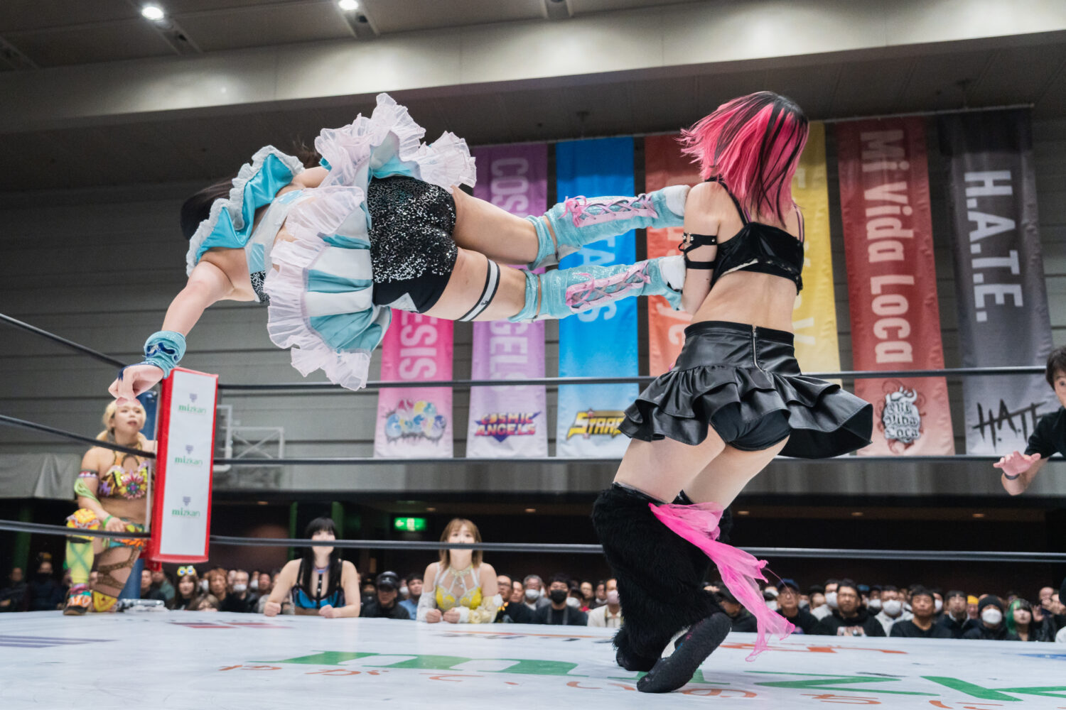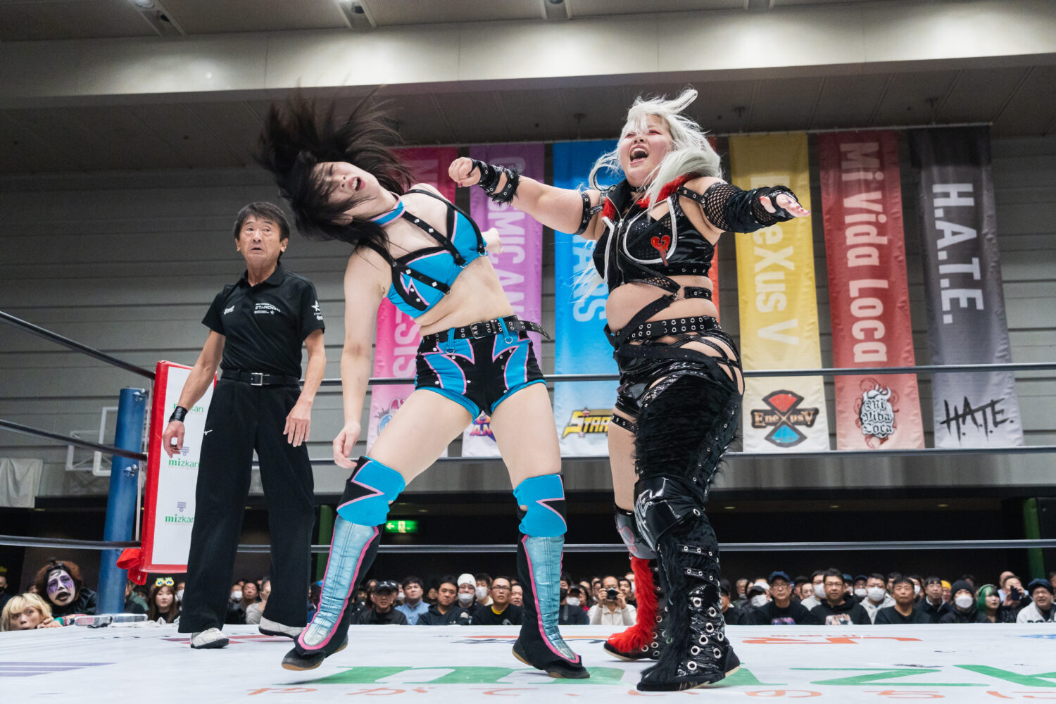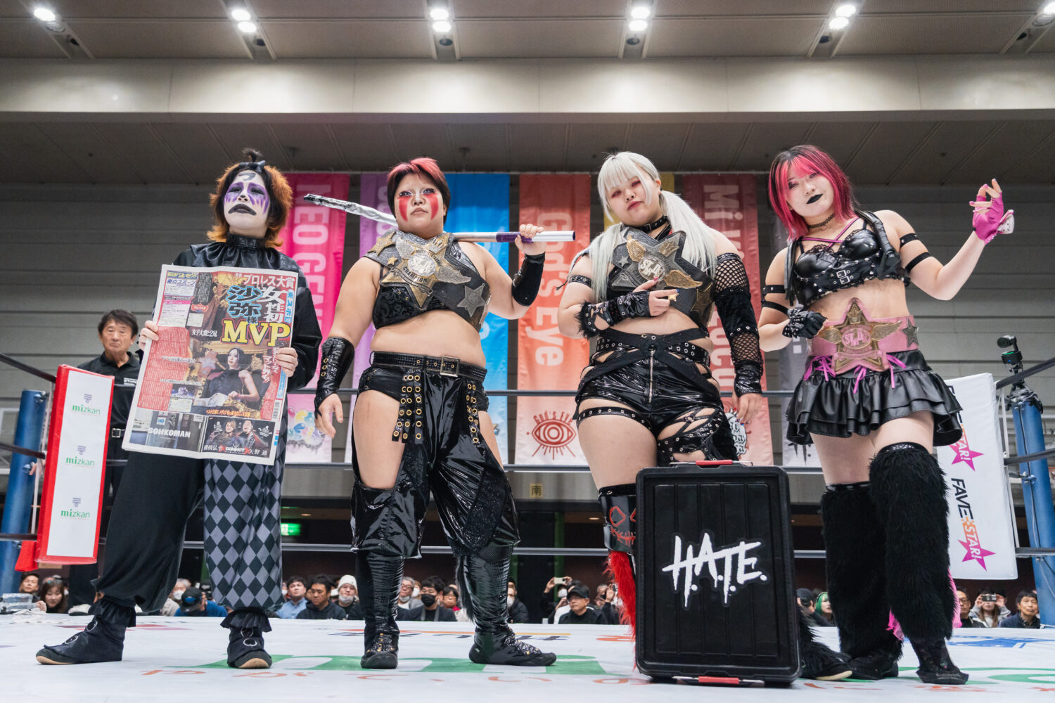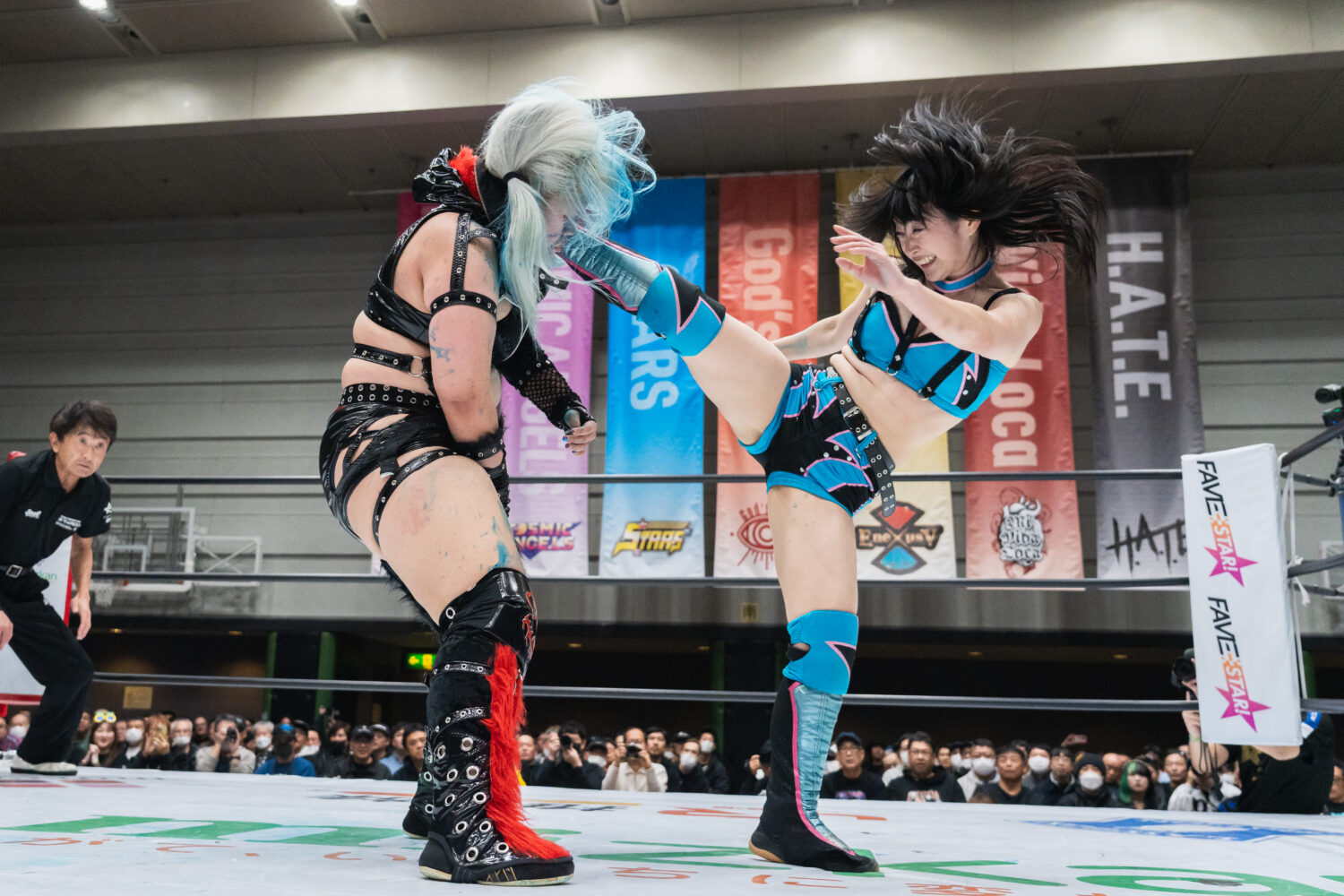 ナツコが先発に出てきて玖麗と向き合う。玖麗がエルボー連打で突進、ナツコが跳ね除ける。ナツコはエルボーを打つが、コズエンが乱入して背後からトリオでドロップキック。ナツコが返すと、玖麗が突進。しかし琉悪夏が足を引いて場外戦に。場外戦でH.A.T.E.が圧倒し、玖麗が戻される。フキゲンが玖麗にスポーツ紙を読みながらインディアンデスロック。吏南が玖麗にヘアーホイップ、顔面を踏みつける。玖麗がエルボー連打、吏南が受けて立つ。玖麗がビッグブーツをかわしてドロップキック。水森が入るとなつぽいと連係で吏南とフキゲンにラリアットとドロップキックの競演。吏南が返すと水森に卍固め。水森が切り返して丸め込みの応酬。吏南がビッグブーツも水森が返す。琉悪夏が水森にセントーン、フェースロック。水森がエスケープすると、琉悪夏はクロスボディー。水森が返すと、なつぽいと合体して琉悪夏にドロップキック。さくらが琉悪夏へ串刺しニーアタック、ドロップキック。琉悪夏が返すと、H.A.T.E.が次々と串刺し攻撃、琉悪夏がラリアット、フェイントをかけてエルボー。玖麗とさくらが合体ドロップキック、水森がラリアット、さくらが三角絞め。コーナーに上がるとナツコが止めて琉悪夏がフィッシャーマン。ナツコと琉悪夏がキックの挟み撃ち。10分経過。ナツコと琉悪夏が合体でさくらと玖麗を攻撃。コーナーに上がりダイブするがかわされる。なつぽいが場外プランチャ。琉悪夏が戻されコズエンが連係攻撃。さくらが琉悪夏へダイビングニーアタック。琉悪夏が返すと、さくらがフィニッシュを宣言してバックを取る。琉悪夏がボックス殴打、さくらがかわして蹴り上げる。ナツコが毒霧も誤爆して玖麗がスピア。さくらが蹴りのコンビネーション。琉悪夏がかわすが玖麗がスピア、さくらがハイキック。琉悪夏が返せずさくらが勝利した。
