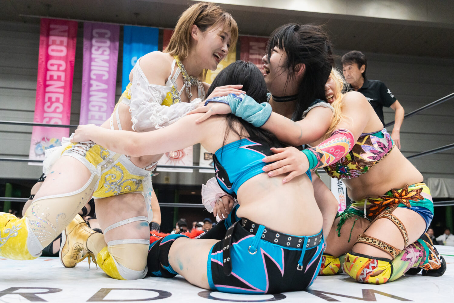 さくら「H.A.T.E.から勝ったぞ! リーグ戦以降ずっとずっと負け続けて、それでも私たちは絶対に正々堂々闘ってきた。コズエンがスターダムを引っ張る、エースになる覚悟があるからです! もうH.A.T.E.がどんな手を使っても私たちは負けない! 私たちが勝つ! 私たちがスターダムです!」