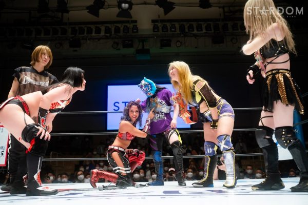 ジュリア&舞華組のドンナ・デル・モンドと鹿島沙希&渡辺桃組の大江戸隊がタッグマッチで激突。無冠になってしまったDDMと、アーティスト・オブ・スターダム王座を奪取し、赤白両ベルトへの挑戦も決めゴッデス王座も視野に入れた大江戸隊。タイトル戦線では対照的になった両軍の闘い。ここから何かが生まれるか?