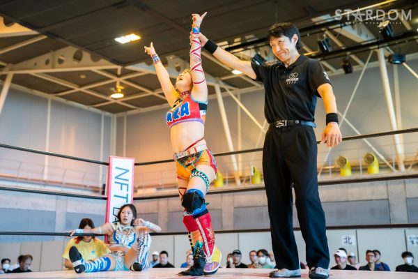 なつぽいと刀羅ナツコの5★STAR GP公式戦は好調同士の一戦。なつぽいが4勝0敗1引き分けで、ナツコは5勝2敗でレッドスターズのトップを走る。ナツコは前日の名古屋大会で中野たむを破り、連日のメルティア食いを狙う。ユニットリーダーをことごとく破ってきたナツコが、ここでゴッデス・オブ・スターダム王者のなつぽいも破るか。それともなつぽいが無敗をキープか。レッドスターズ、天王山的試合の行方は?